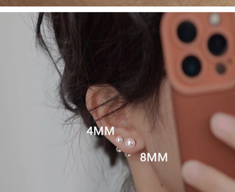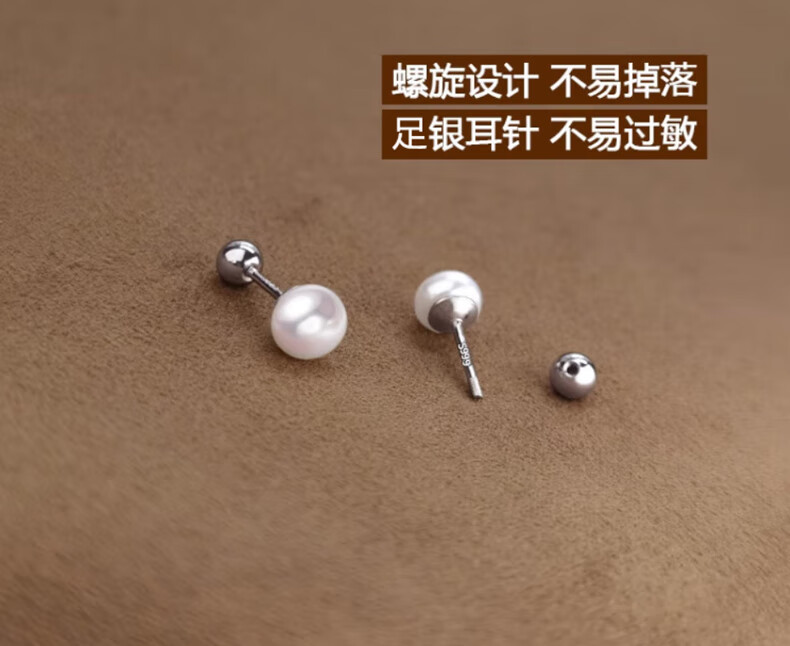 Core luxury pure s999 pure silver freshwater pearl earrings for women, pierced earrings, earrings for sleeping, no need to remove screws, small ear bone nails, single 4MM white (super mini)