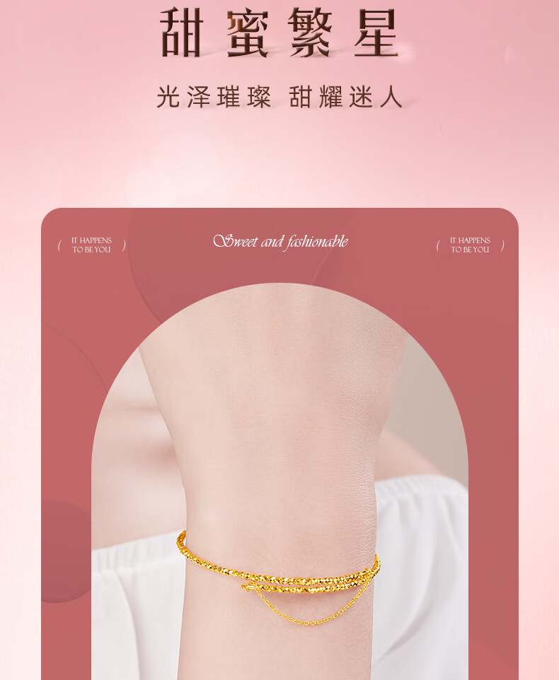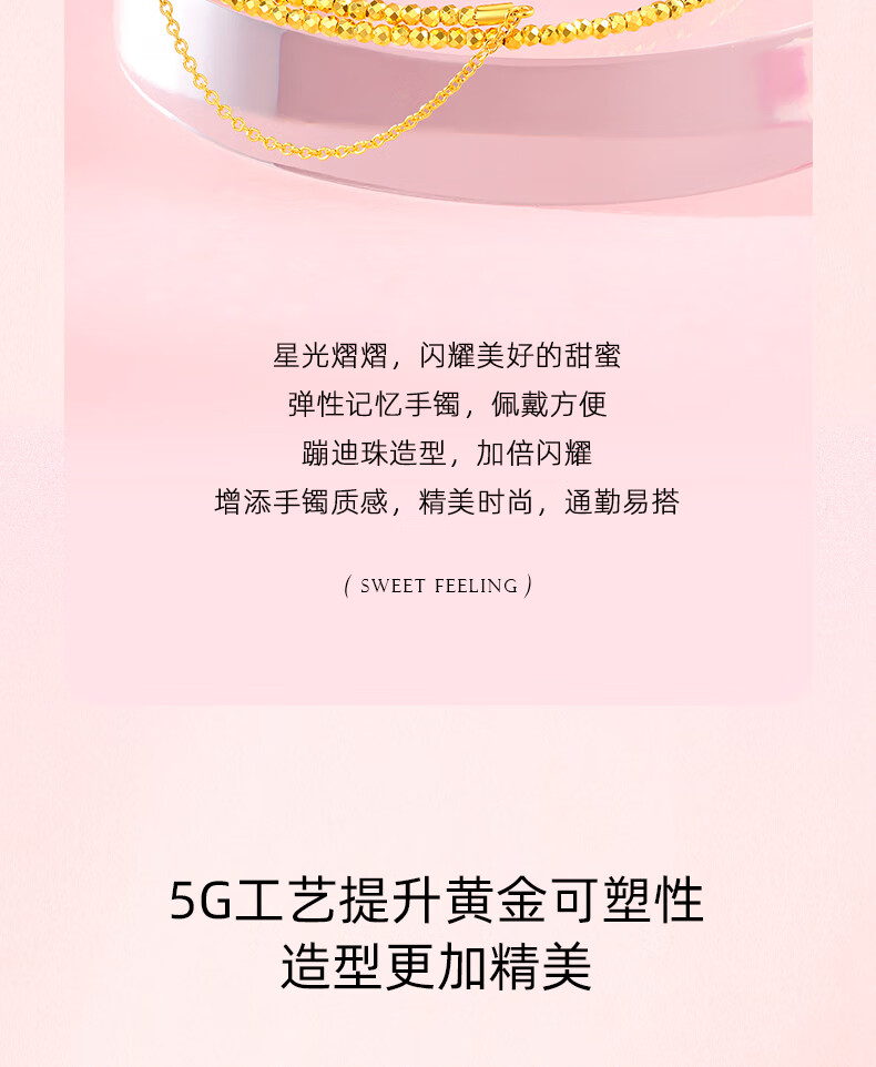Zhongxin Jewelry Sweet Star 5G Crafts Disco Beads Gold Bracelet Transfer Beads Elastic Bracelet Pure Gold Bracelet for Women Gift Gold Weight 2.71g
