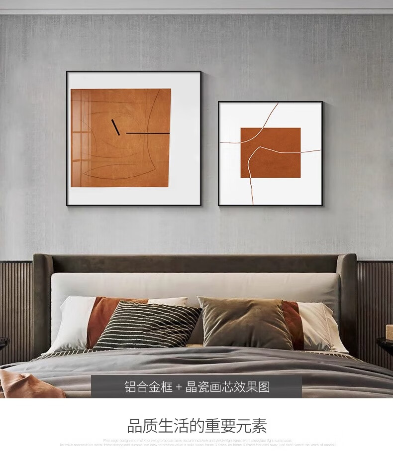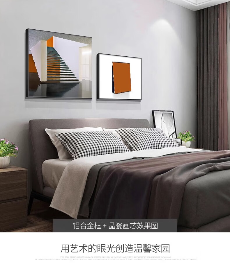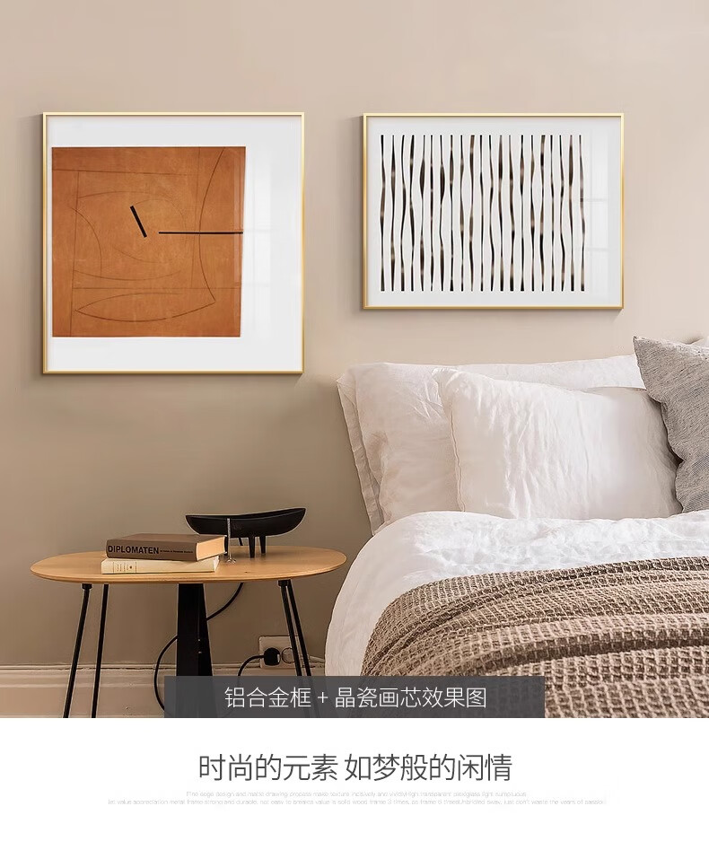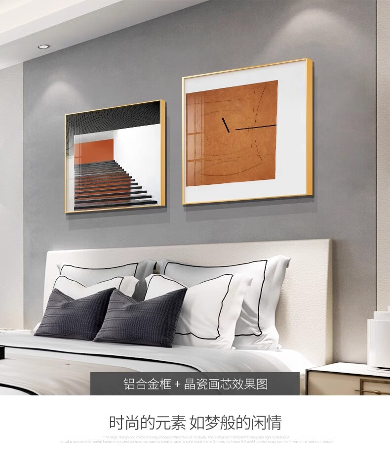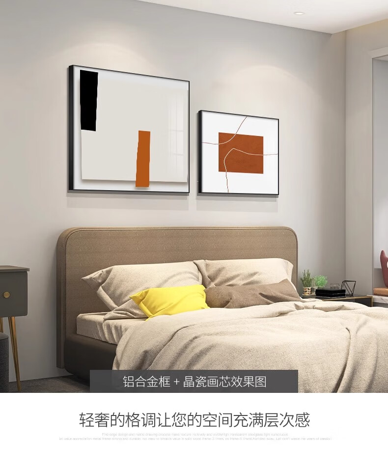 Yichao Bedroom Decorative Painting Modern Simple Bedside Hanging Painting Master Bedroom Background Wall Restaurant Mural Living Room Sofa Wall No Punching 01 Style 60*80+50*70 Crystal Porcelain Painting Abstract Art Suitable for 1.5-1.8 Meter Bed Aluminum Alloy/Crystal Porcelain Painting Smooth Surface + Easy to Care