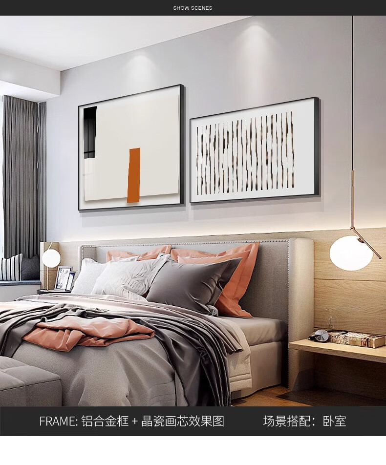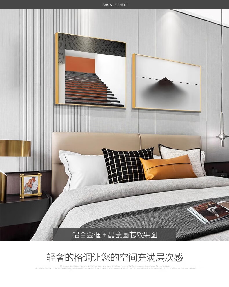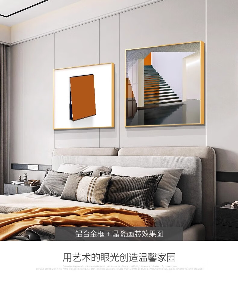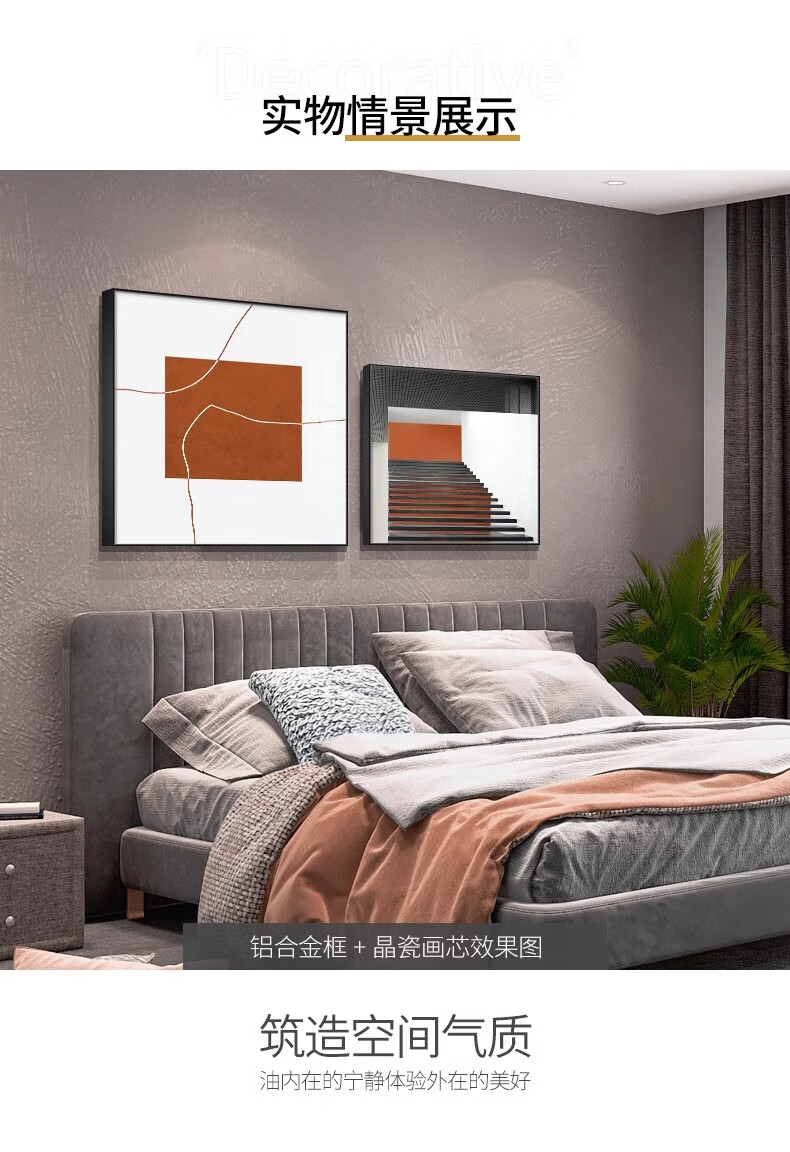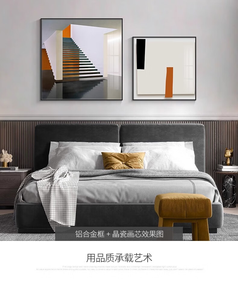 Yichao Bedroom Decorative Painting Modern Simple Bedside Hanging Painting Master Bedroom Background Wall Restaurant Mural Living Room Sofa Wall No Punching 01 Style 60*80+50*70 Crystal Porcelain Painting Abstract Art Suitable for 1.5-1.8 Meter Bed Aluminum Alloy/Crystal Porcelain Painting Smooth Surface + Easy to Care