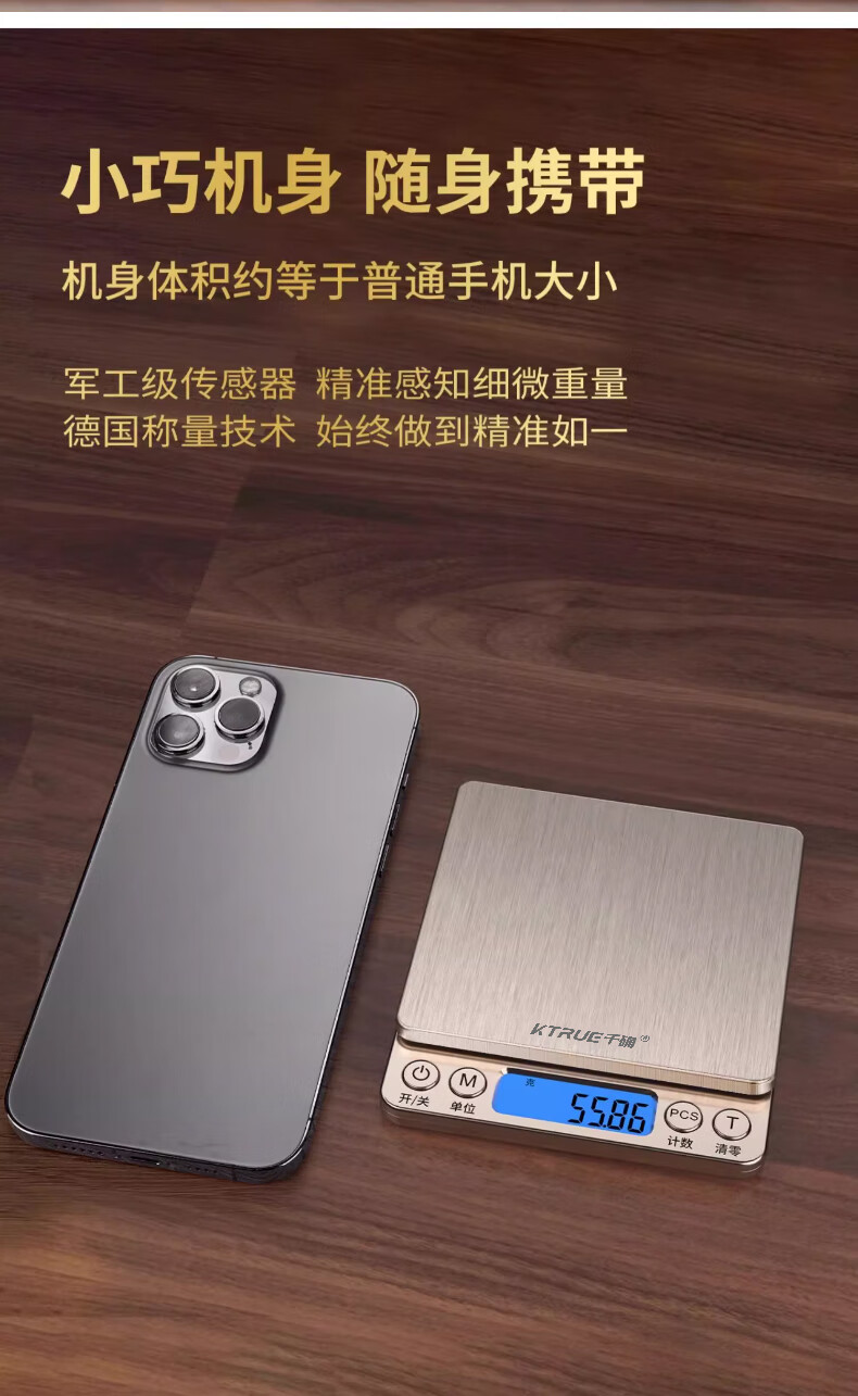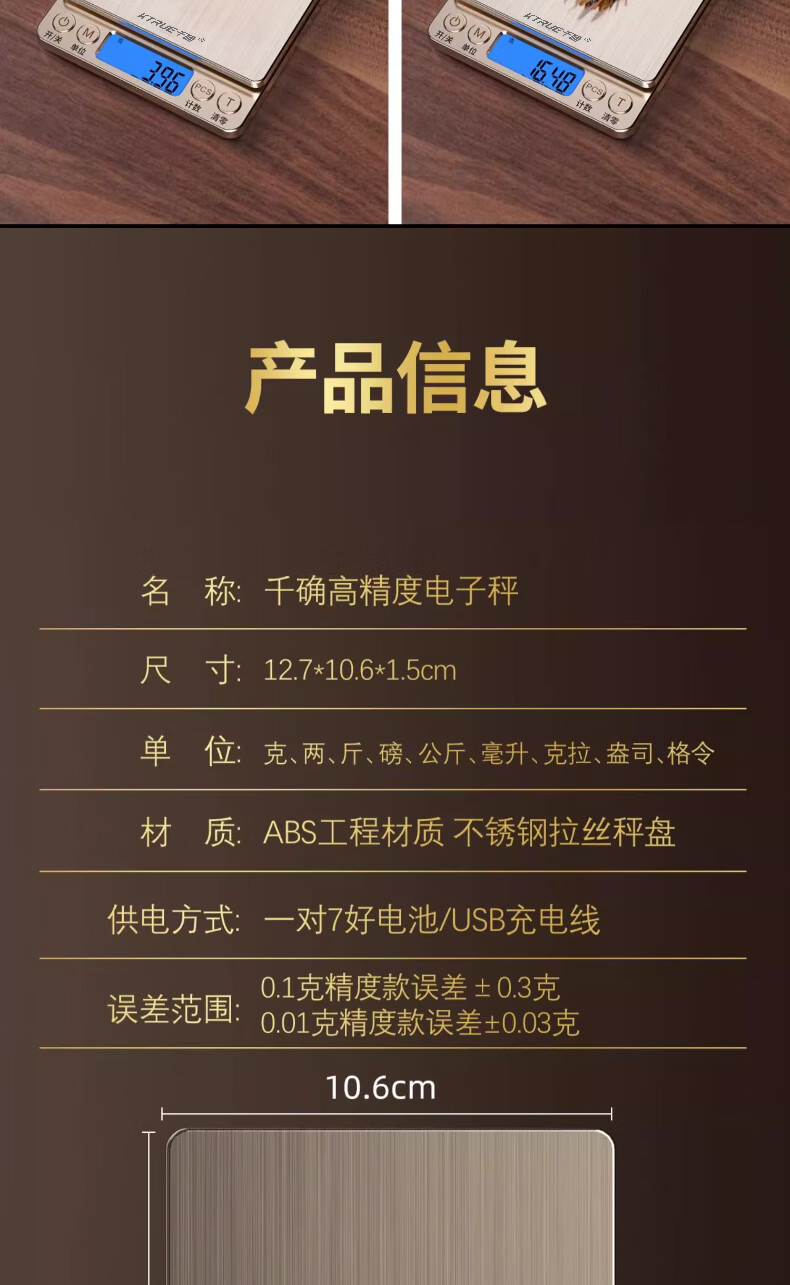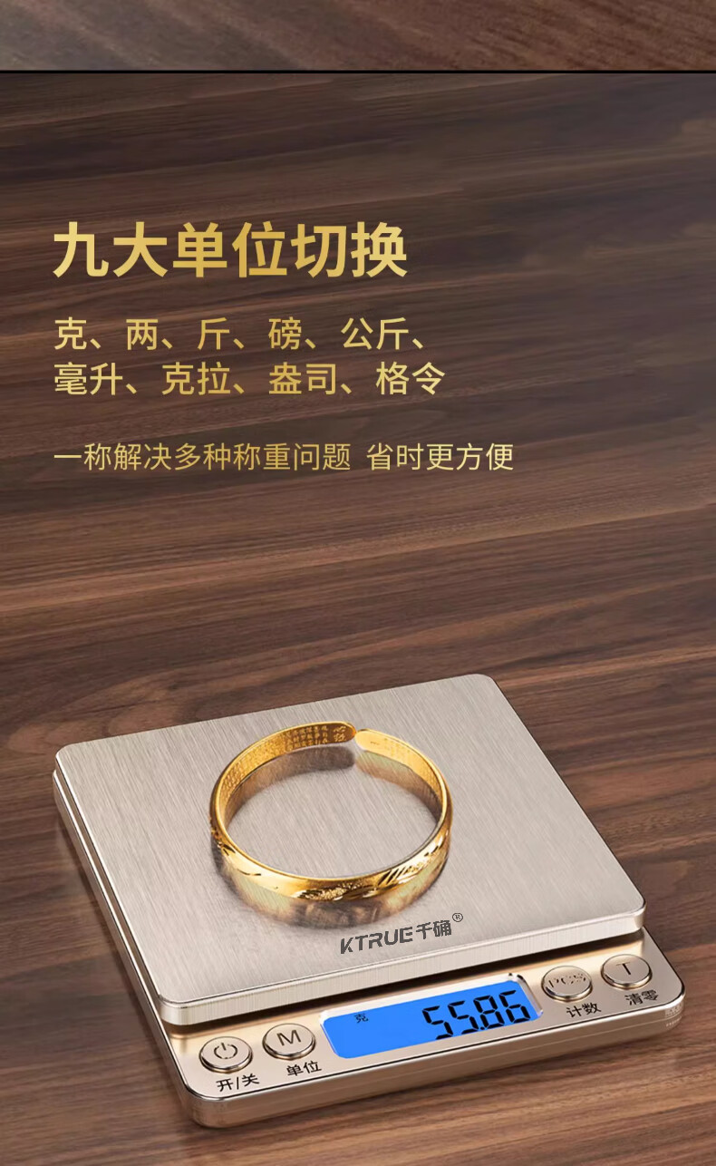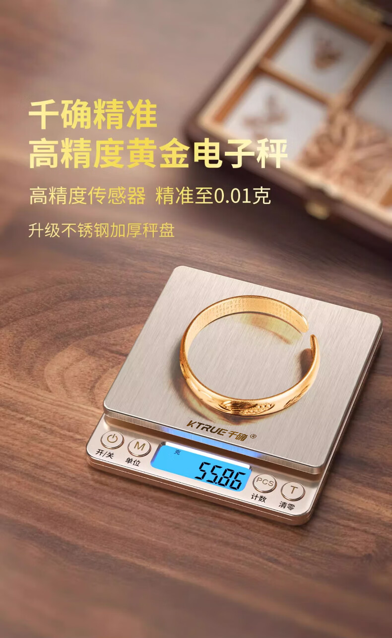 Qianque Gold Jewelry Special Electronic Scale Jewelry Gram Scale Small Gram Scale Accurate to 0.01 Gram Balance Rechargeable + Weight + Tray 500g 0.01g