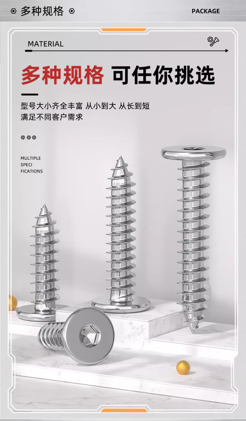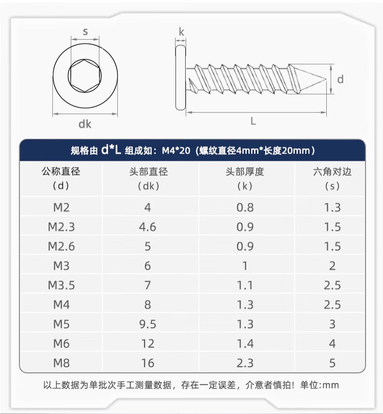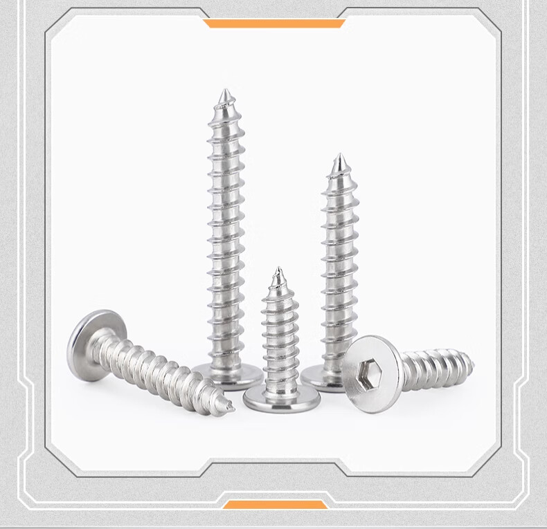 Tianzhuo Hardware 304 stainless steel flat head hexagonal self-tapping screws large flat head ultra-thin head screws low head round head self-tapping screws M2*4 100 pieces