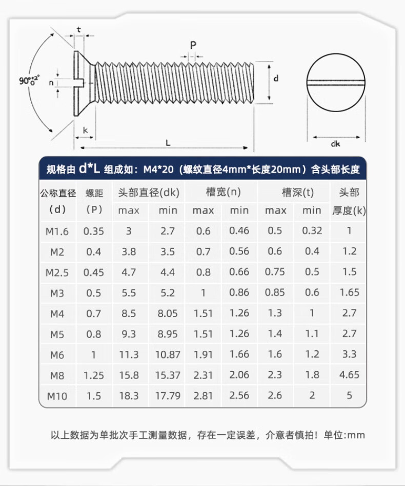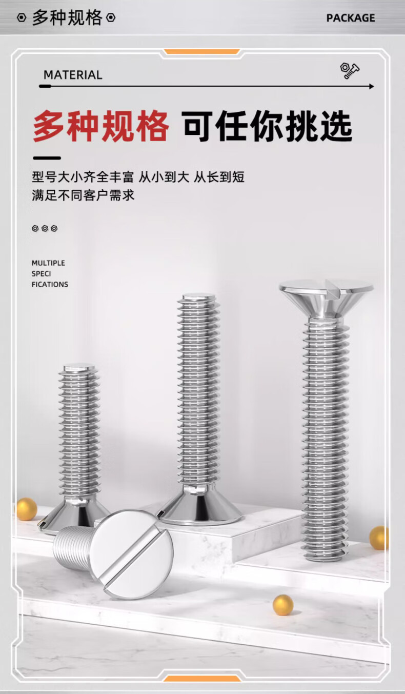 Tianzhuo Hardware GB68 slotted countersunk head screws 304 stainless steel slotted flat head bolts M1.6M2M3M4M5M6M8M10 M1.6*12-50 pieces