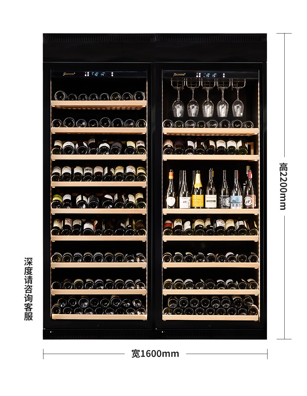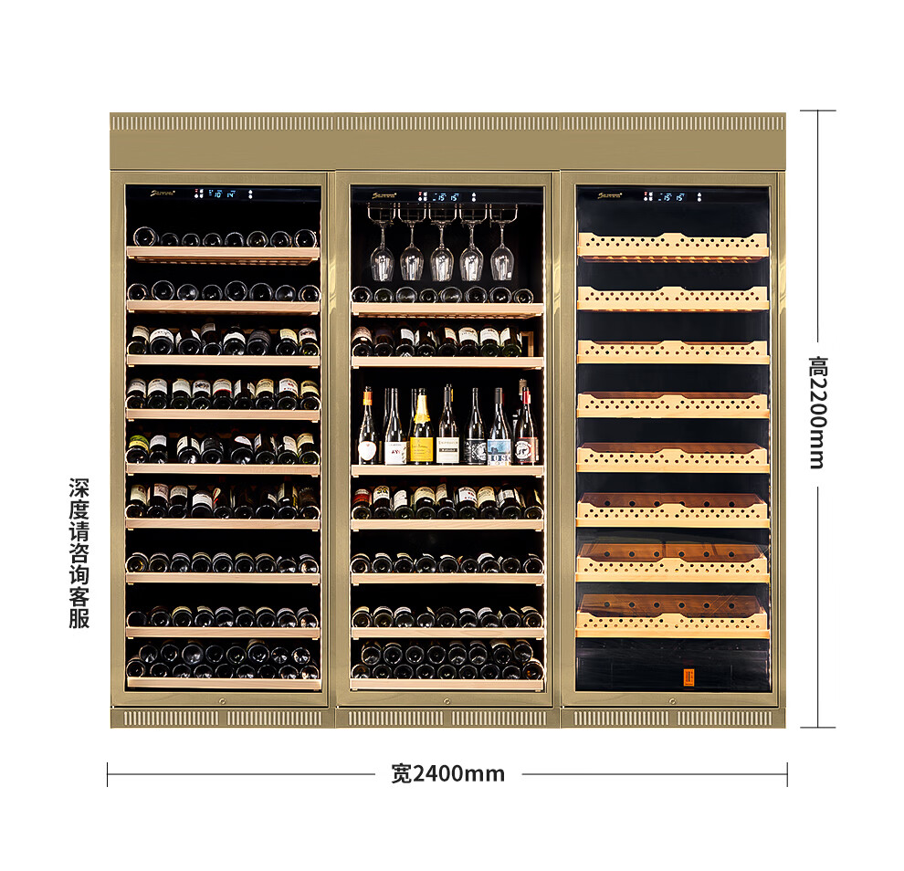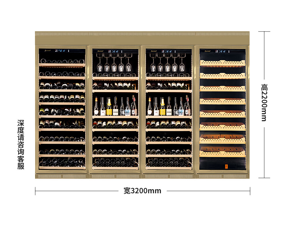 SILIWERE/SILIWERE red wine cabinet, constant temperature wine cabinet, custom wine cabinet, large wine cabinet, double door wine cabinet, custom wine cabinet, width 3200, depth 450, depth 2200 champagne gold 800L exclusive version