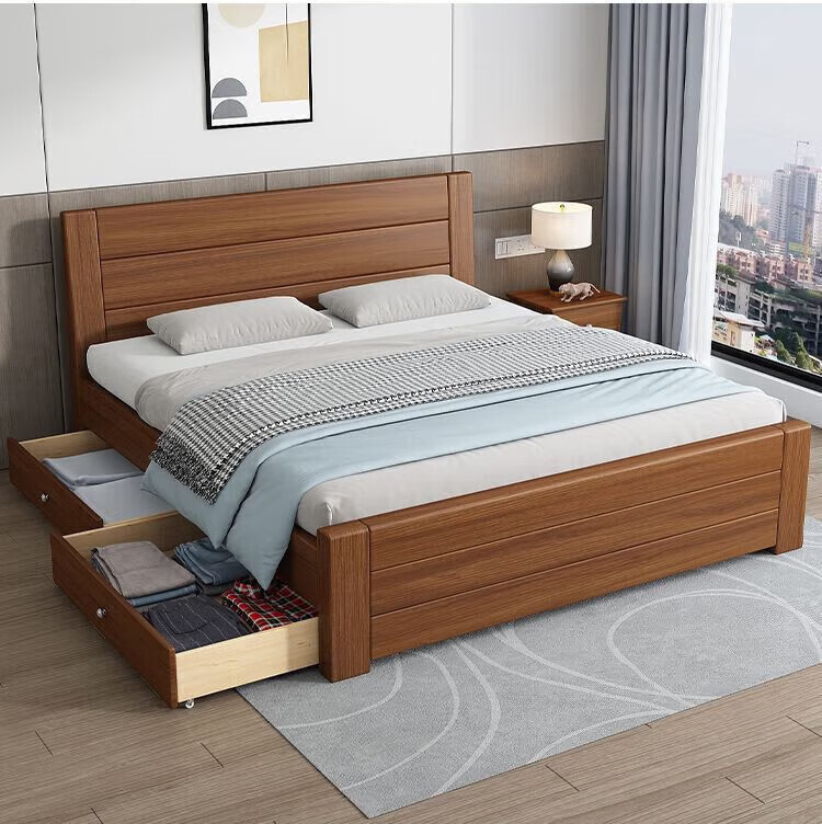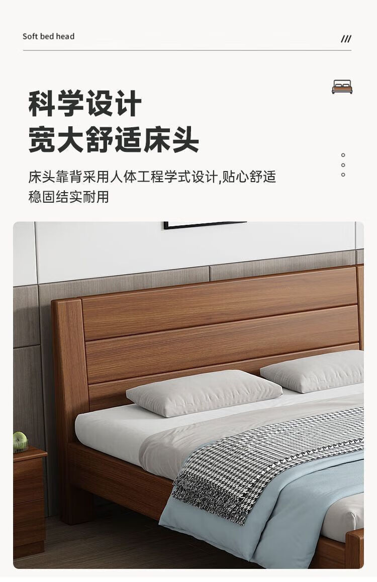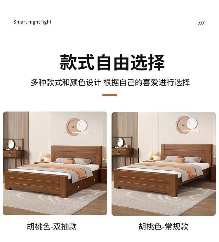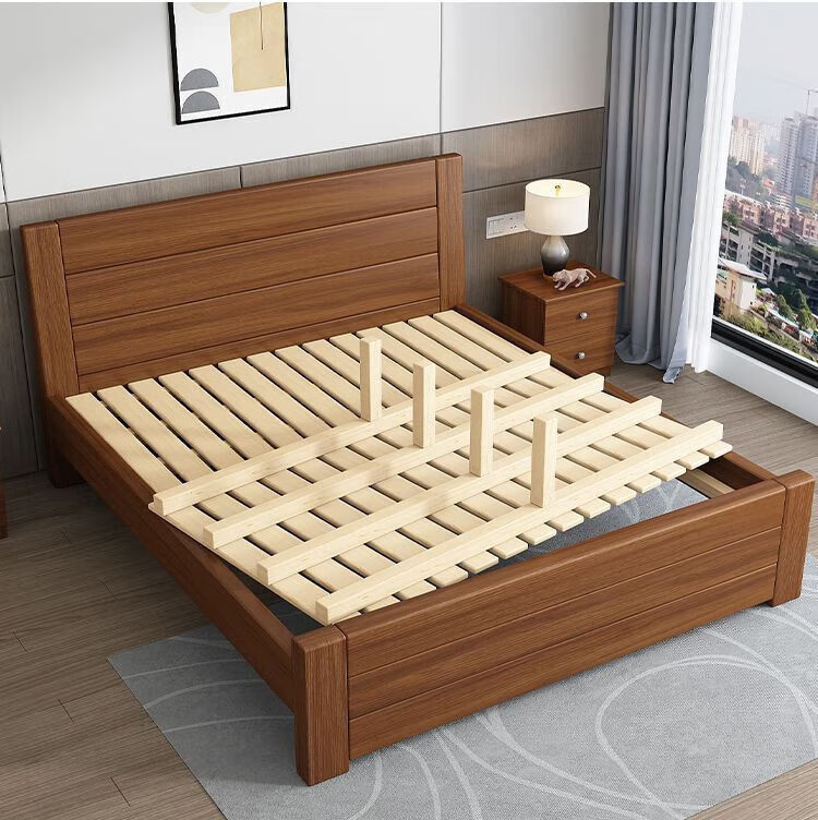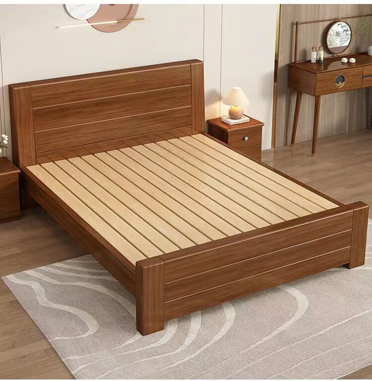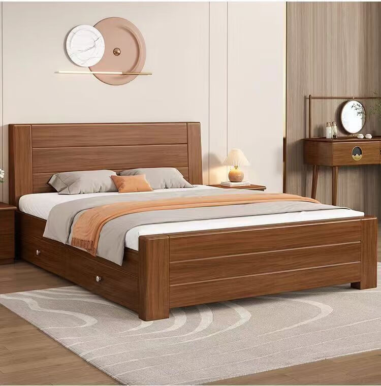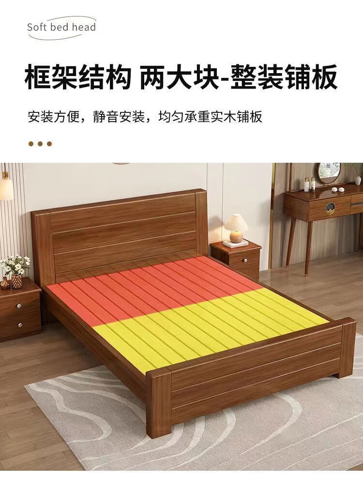 Xingyuhui solid wood bed 1.5m 1.8m new Chinese double bed walnut color wooden bed master bedroom home modern simple single walnut color bed 1.5m*2m frame structure