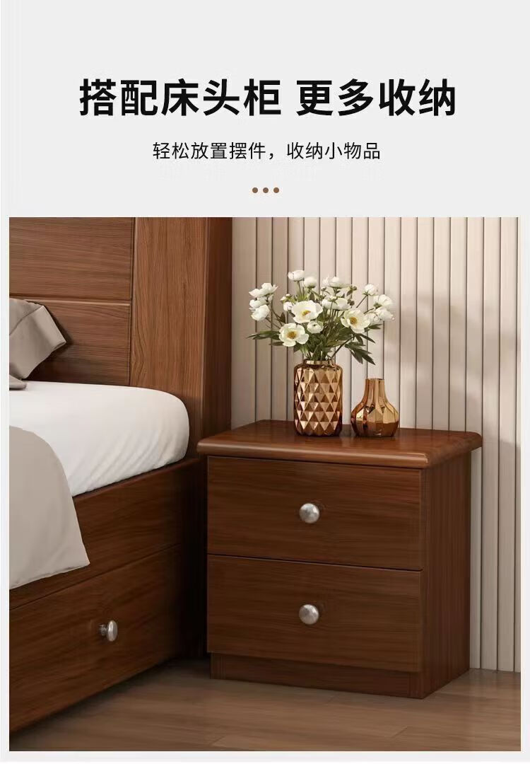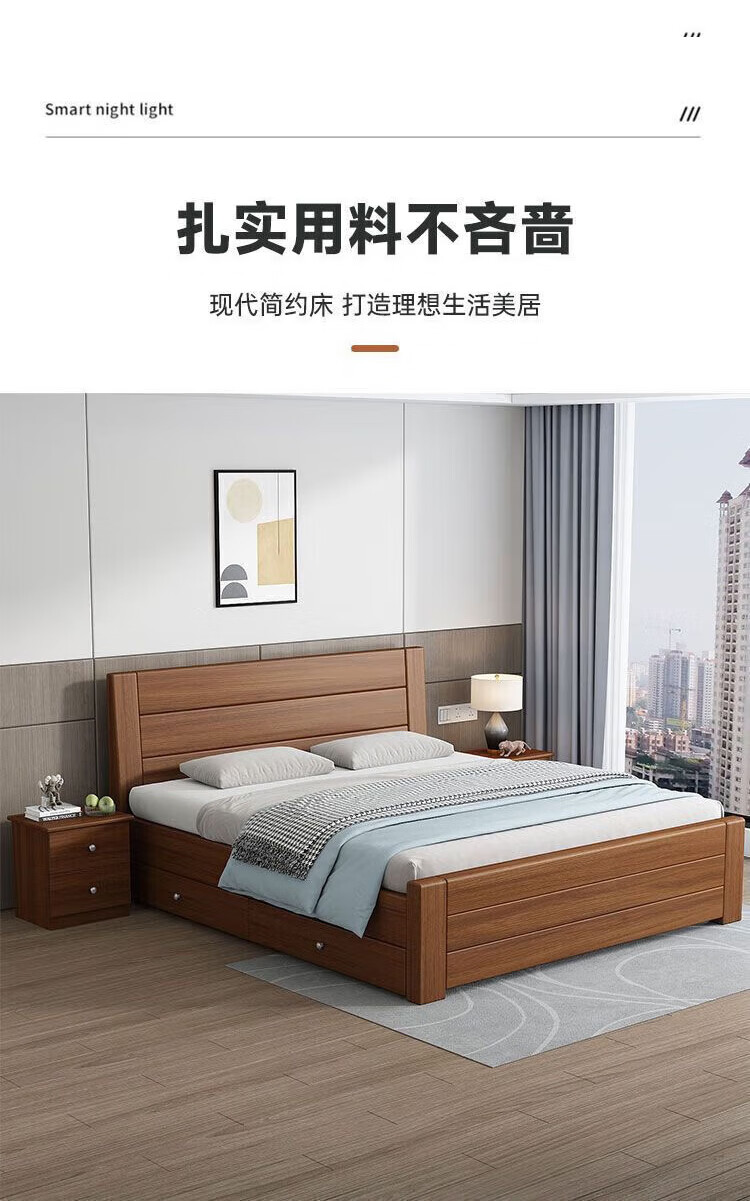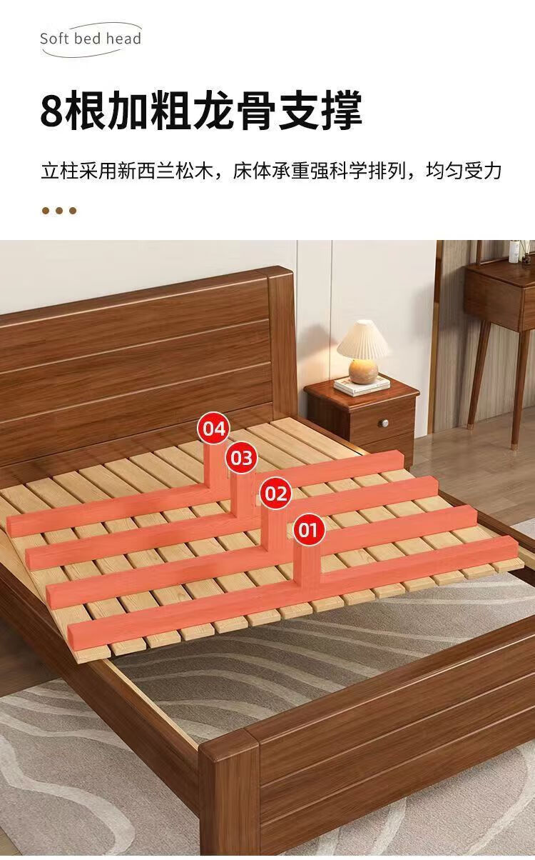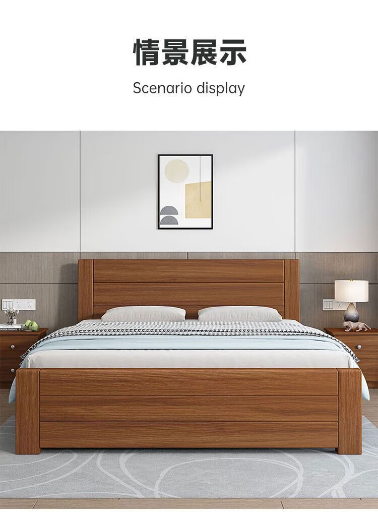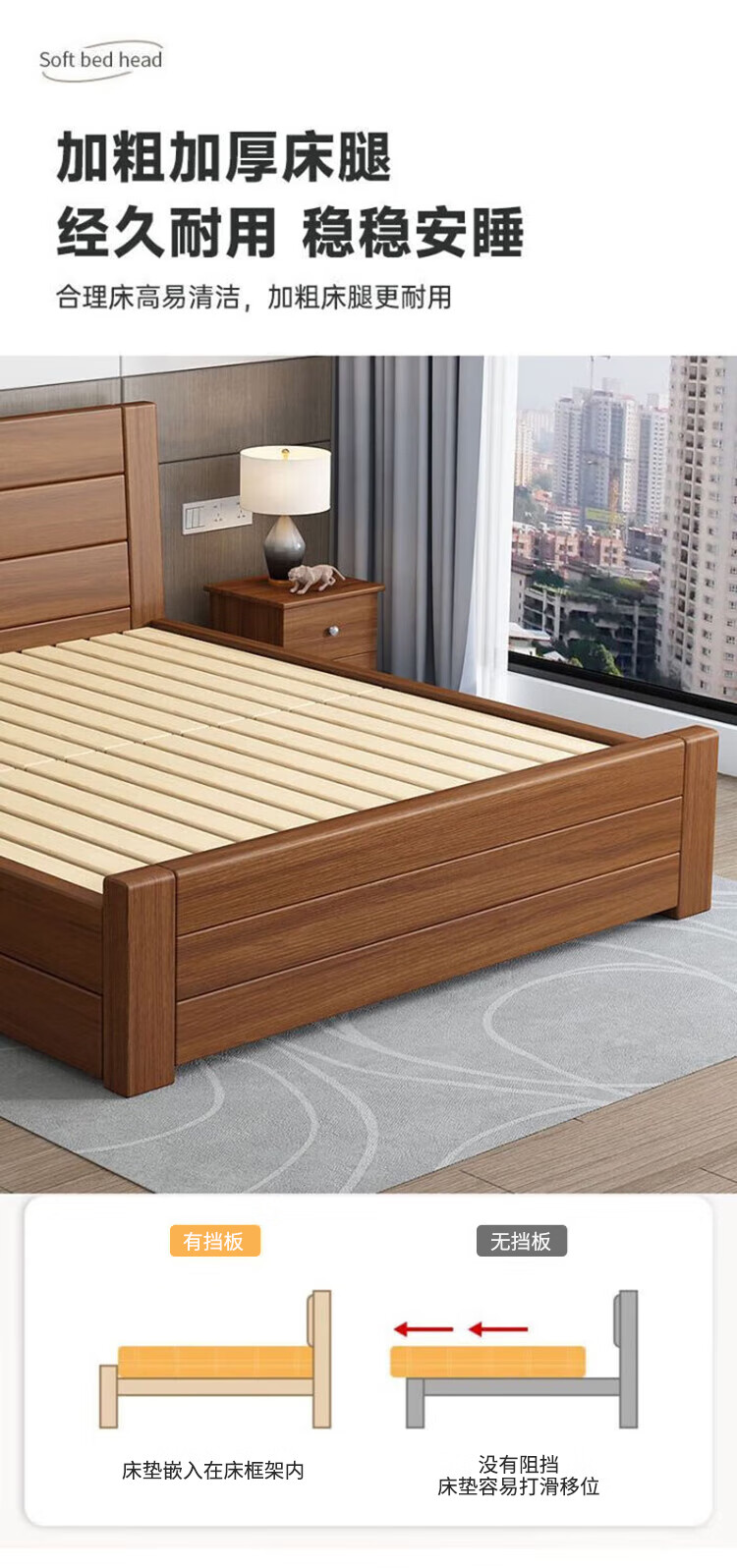Xingyuhui solid wood bed 1.5m 1.8m new Chinese double bed walnut color wooden bed master bedroom home modern simple single walnut color bed 1.5m*2m frame structure