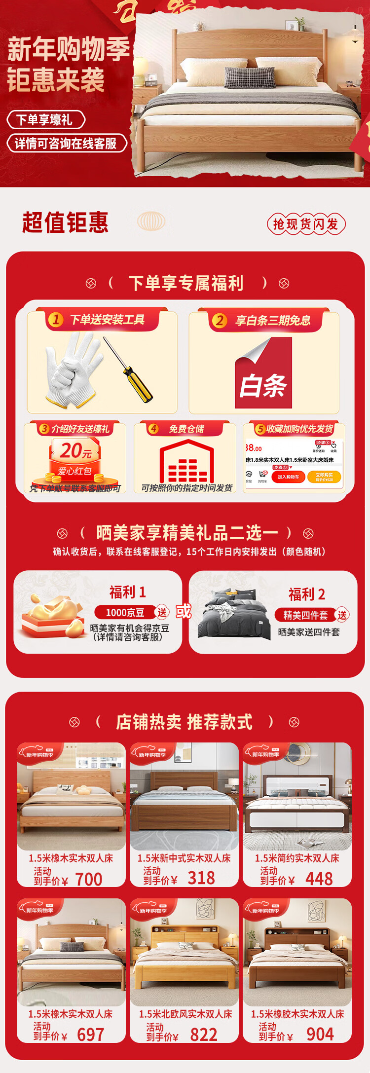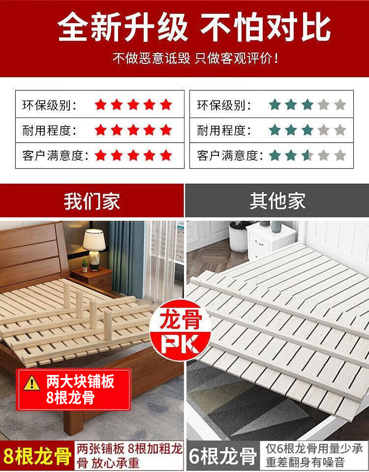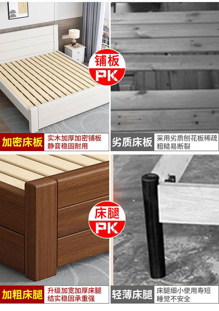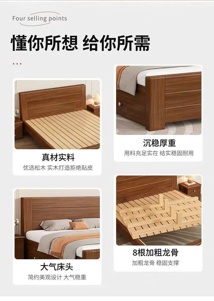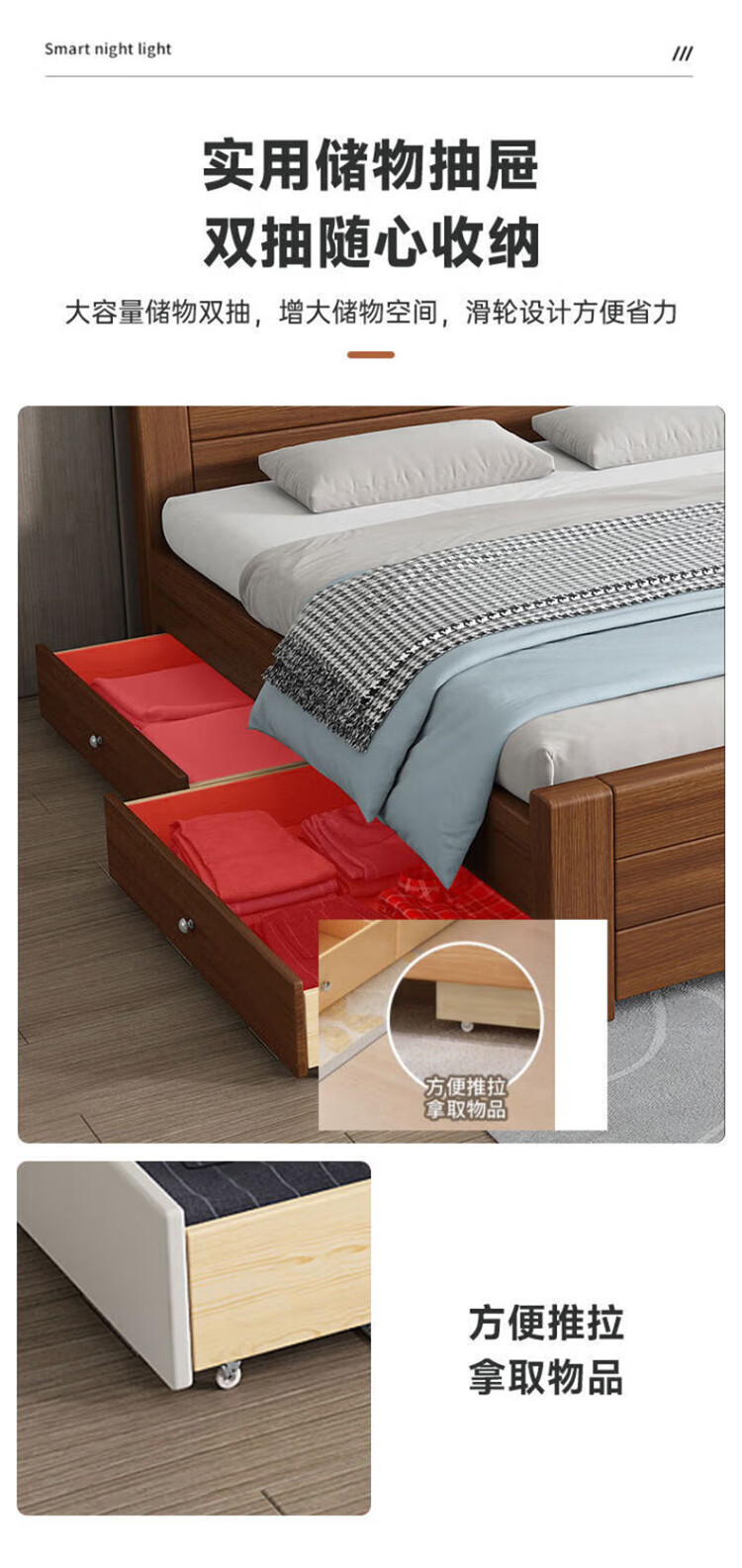 Xingyuhui solid wood bed 1.5m 1.8m new Chinese double bed walnut color wooden bed master bedroom home modern simple single walnut color bed 1.5m*2m frame structure