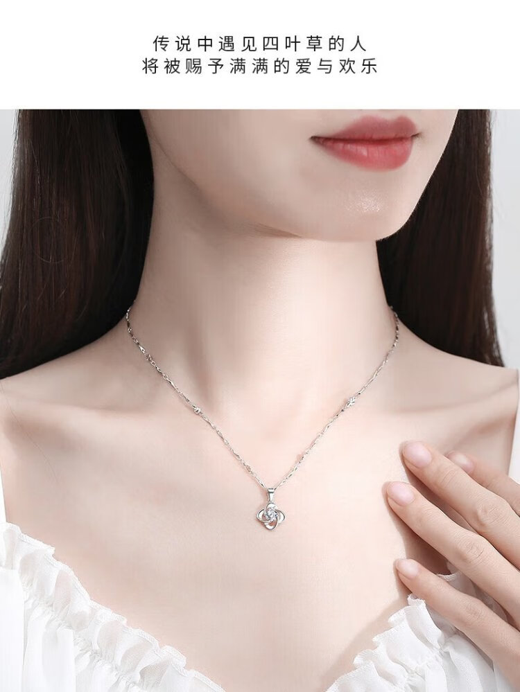 Fasifan four-leaf clover necklace for women, moissanite diamond platinum pendant, anniversary, Valentine's Day, birthday gift for girlfriend and wife, light luxury model - set with D color flawless moissanite diamond