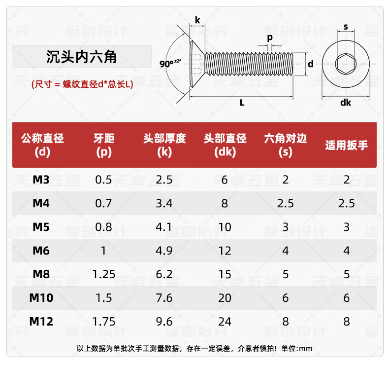 Tianzhuo Hardware 201 stainless steel countersunk head hexagonal screws flat head screws extended flat cup bolts M3M4M5M6M8M10M12 M6*18-25 only
