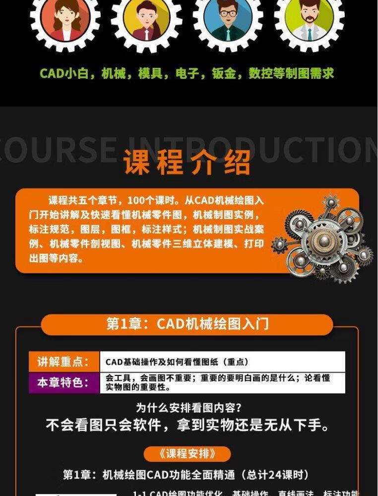 零基础新手到精通高级CAD机械绘图教程视频三维软件设计自学课程