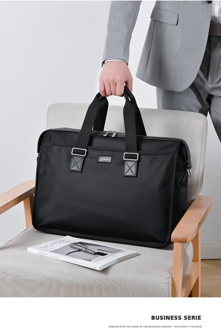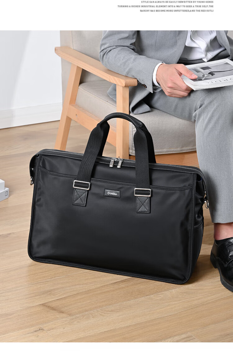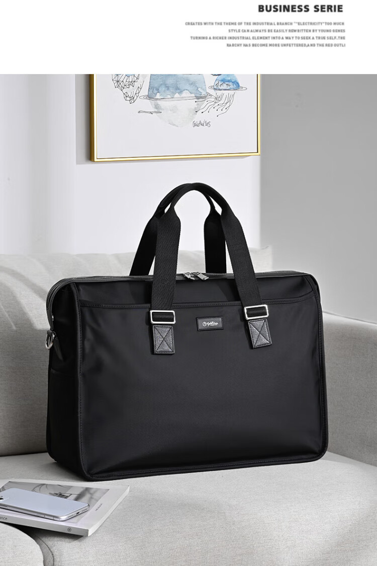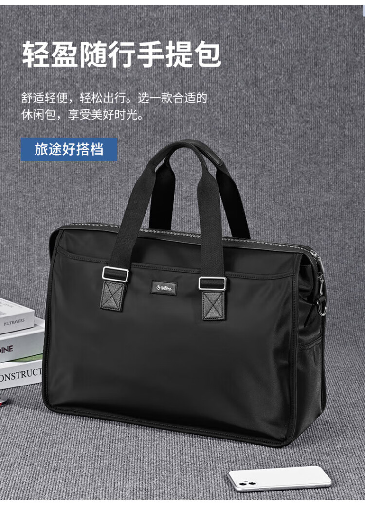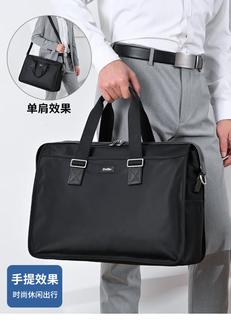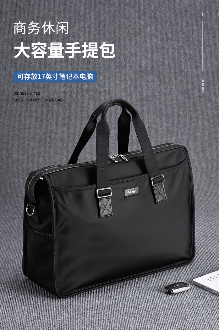 Goldlion men's handbag 2025 new Oxford cloth large capacity casual fashion men's bag computer business men's briefcase black large size 46*34*15CM large bag 17 inches