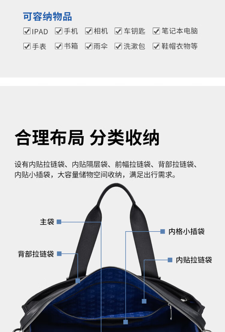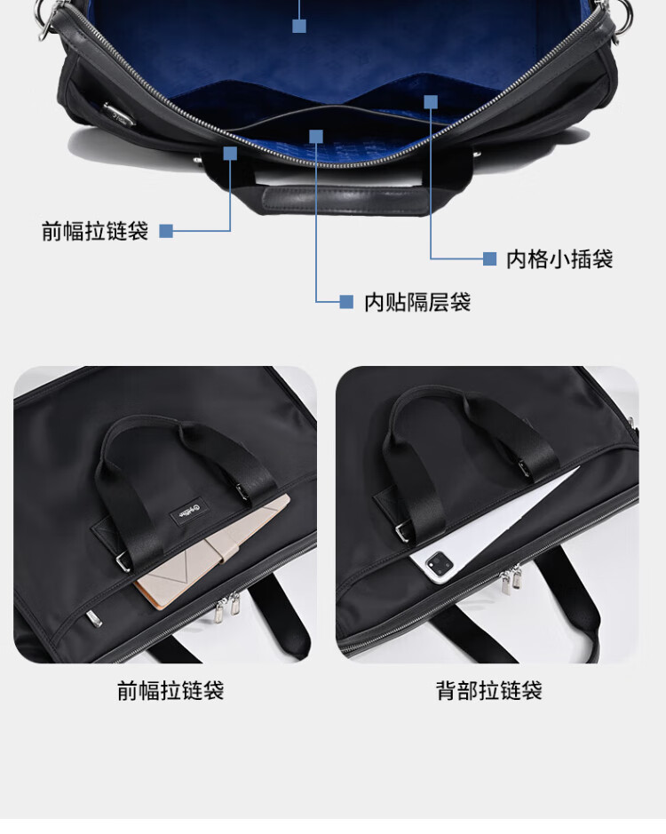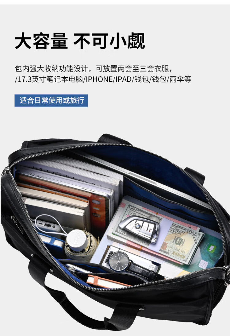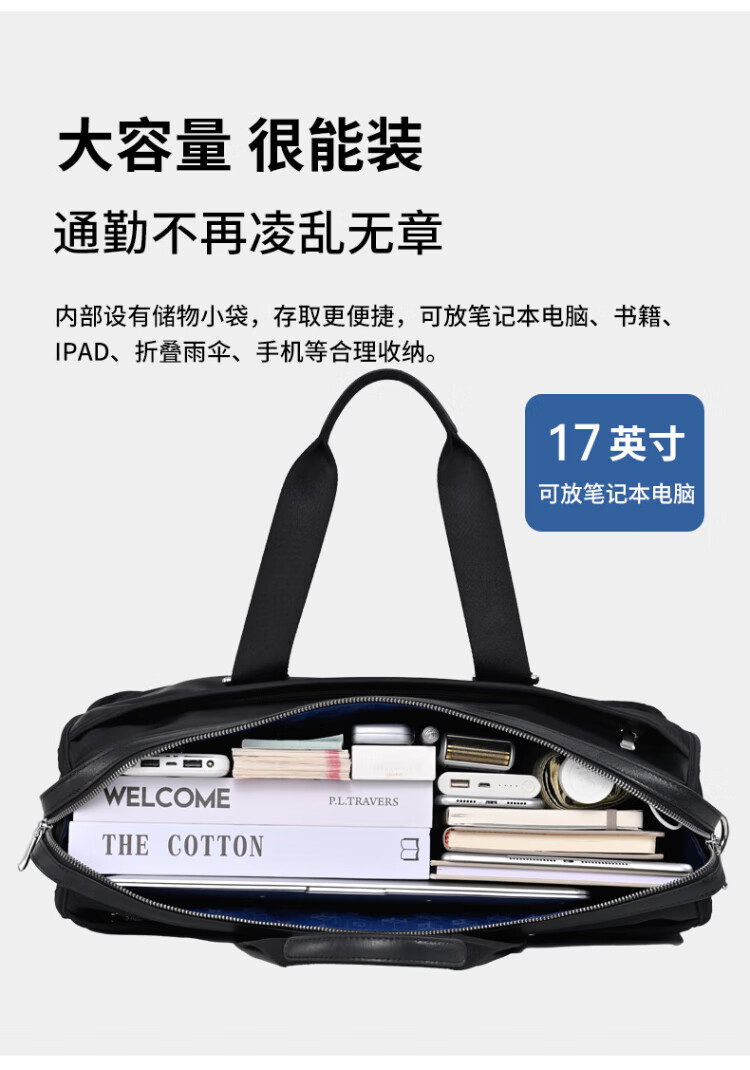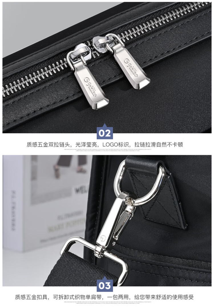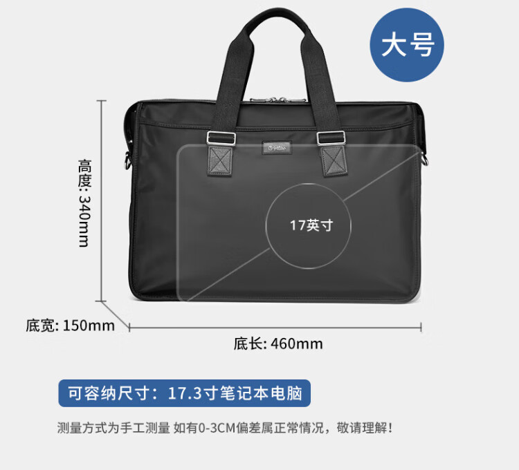 Goldlion men's handbag 2025 new Oxford cloth large capacity casual fashion men's bag computer business men's briefcase black large size 46*34*15CM large bag 17 inches
