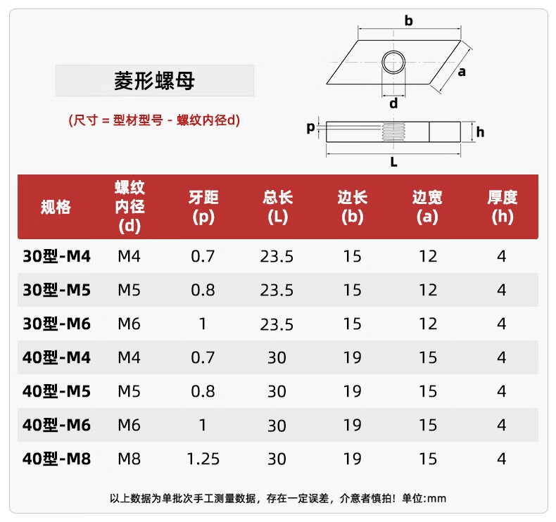Tianzhuo Hardware national standard aluminum profile accessories galvanized diamond nut diamond nut 30*30 type 40X40 square M4M5M6M8mm 40 type-M8 10 pieces