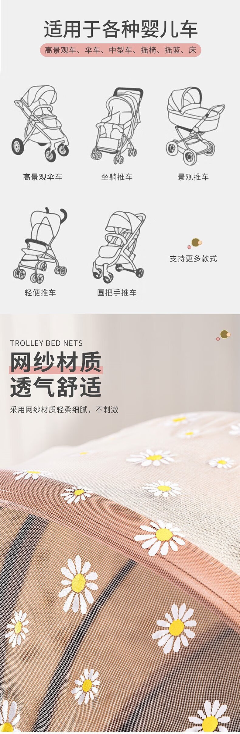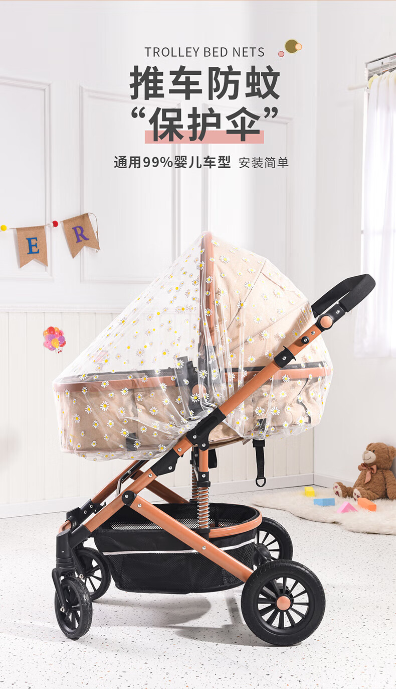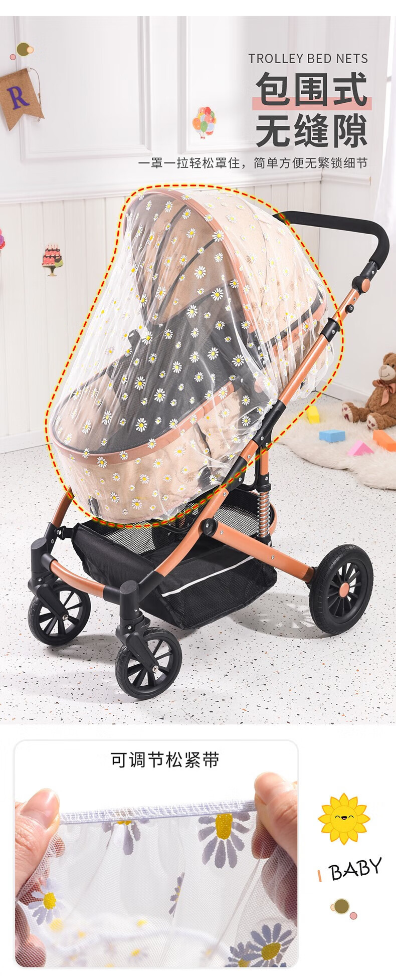 Wusuowei Stroller Mosquito Net Full Cover Universal Baby Stroller Mosquito Cover Increased Mesh Shade Children's Hand Push White Chrysanthemum (Enlarged Encrypted Stroller Mosquito Net)