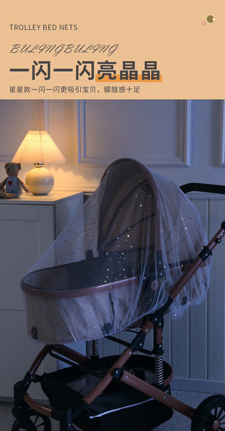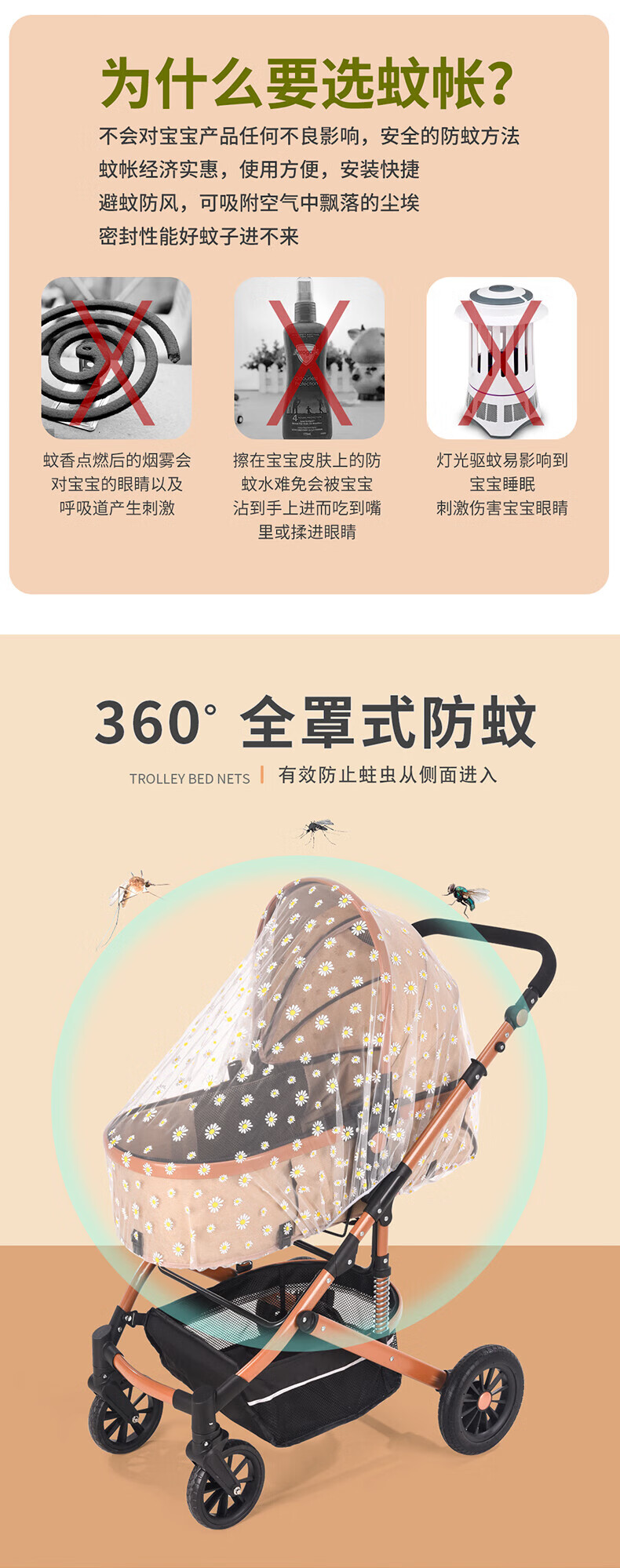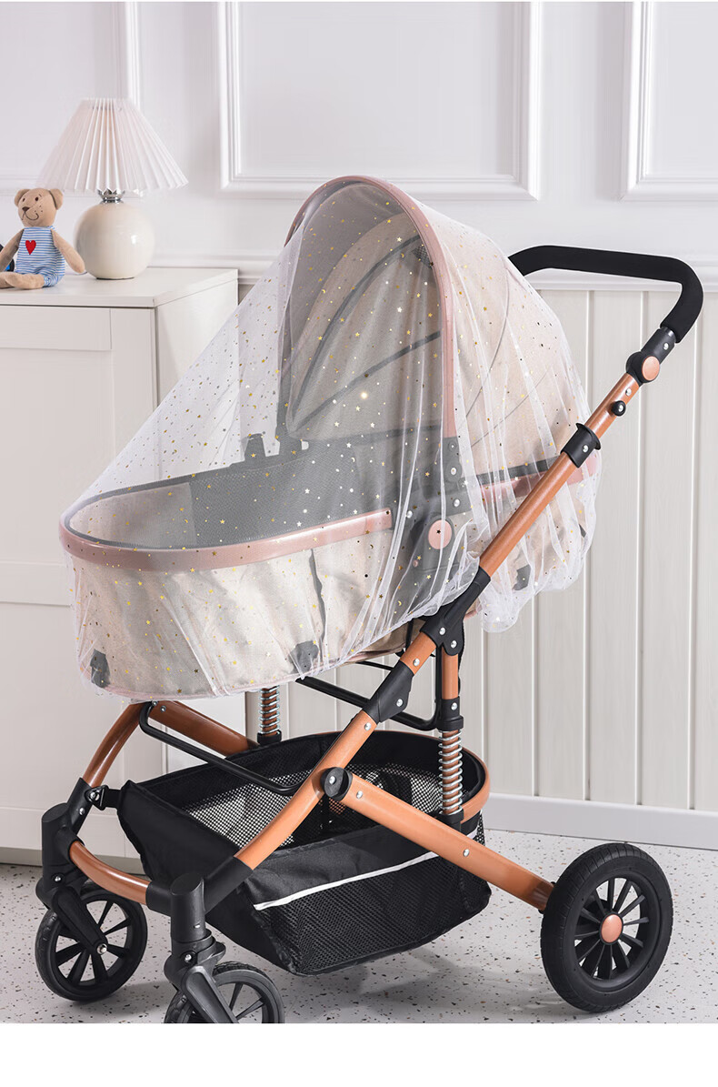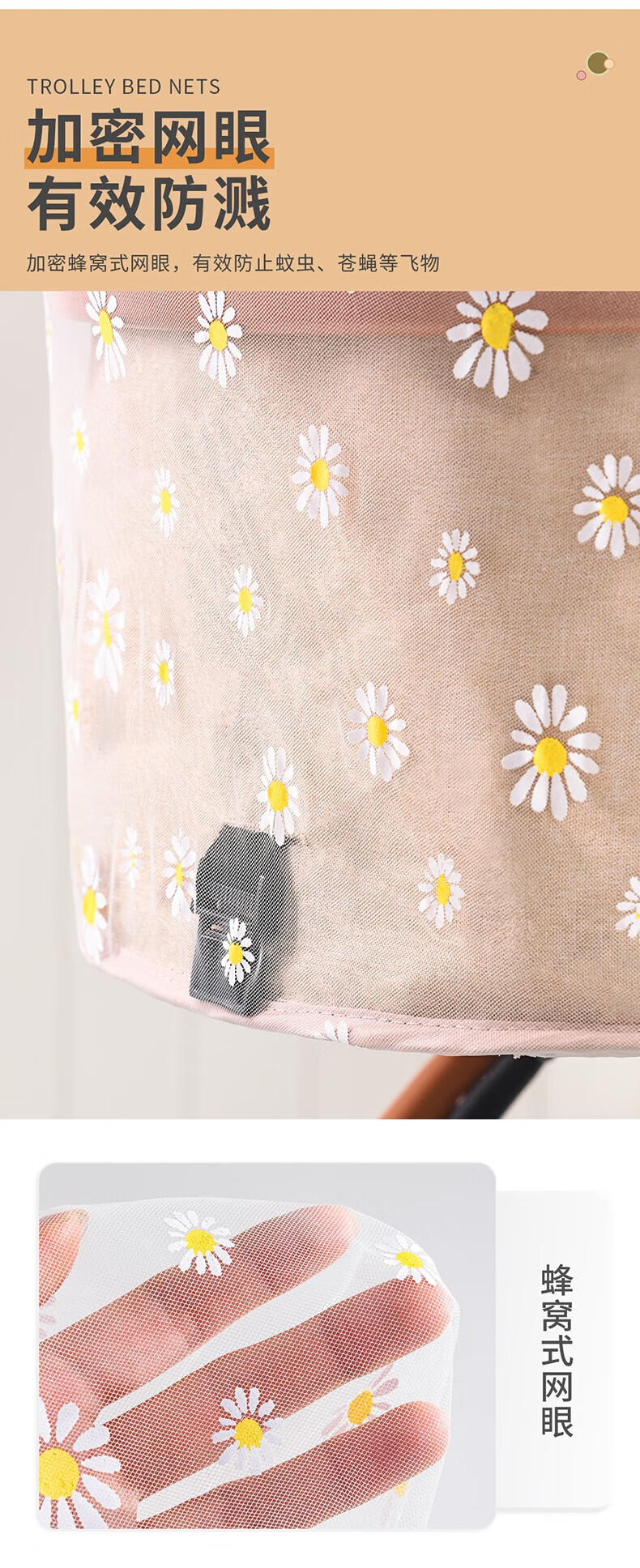 Wusuowei Stroller Mosquito Net Full Cover Universal Baby Stroller Mosquito Cover Increased Mesh Shade Children's Hand Push White Chrysanthemum (Enlarged Encrypted Stroller Mosquito Net)