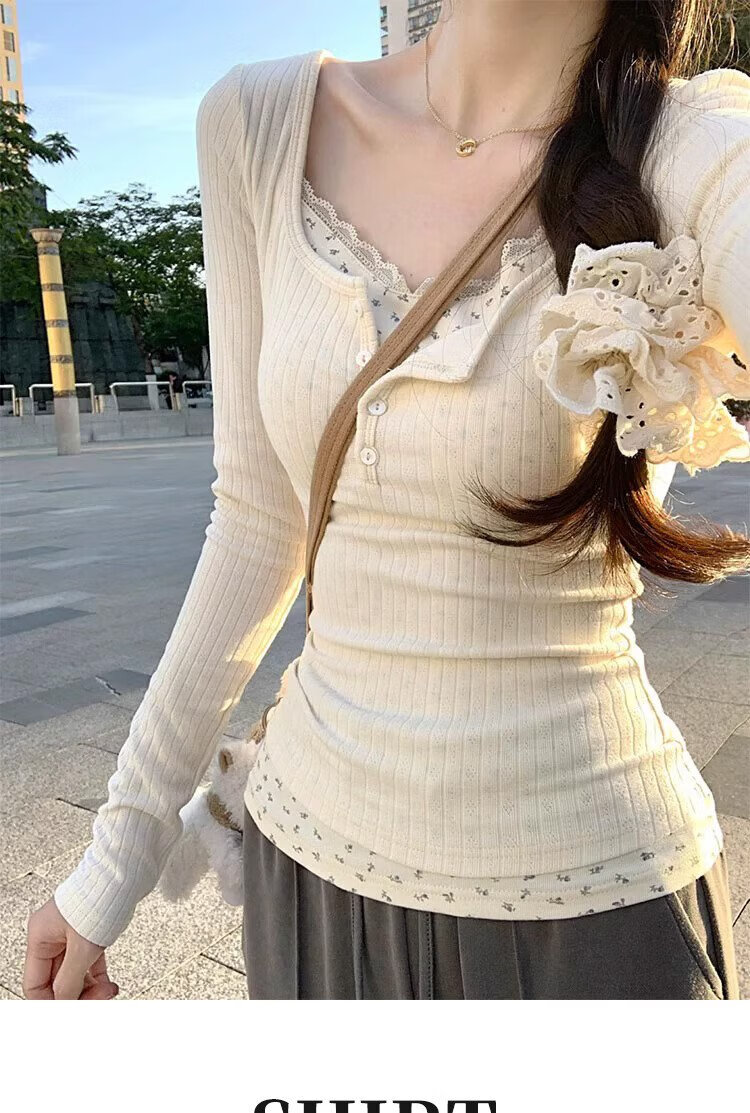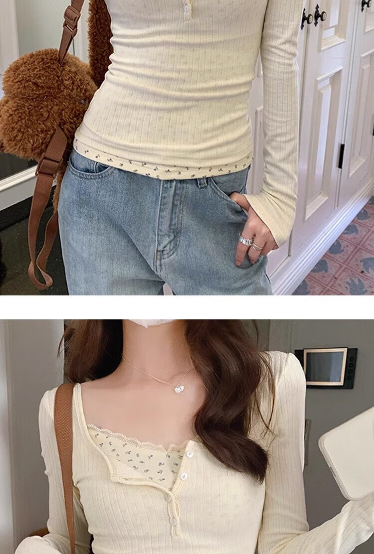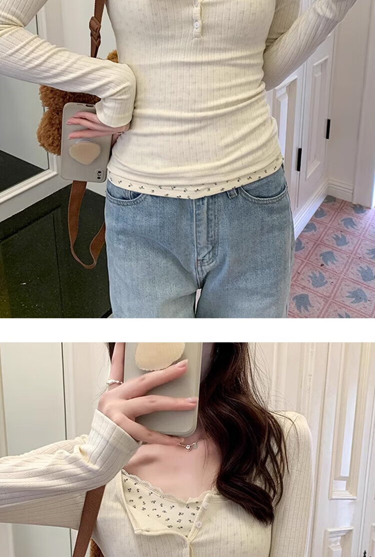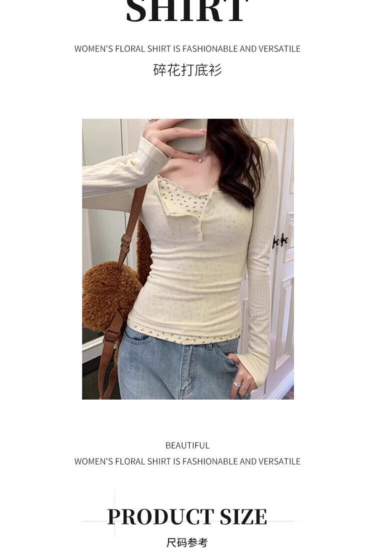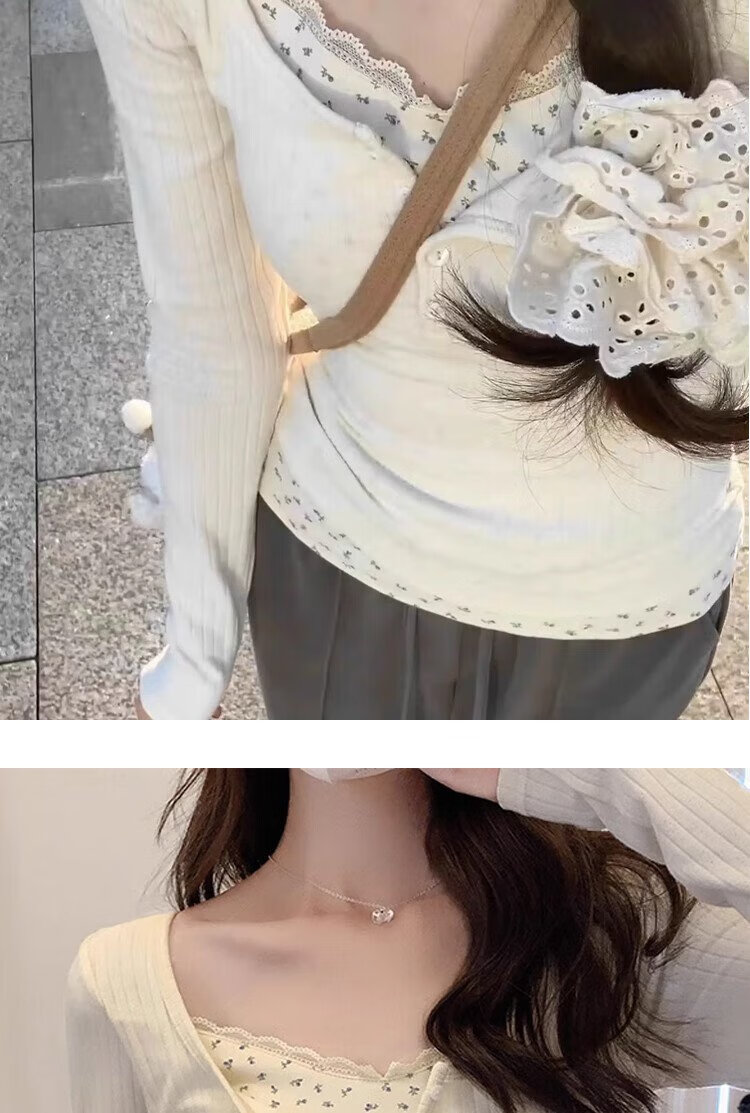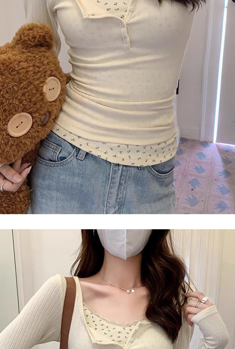 Miao Yijia fake two-piece floral lace winter bottoming shirt for women, which can be worn outside, pure and slim-fitting long-sleeved top, fashionable and stylish for spring. Floral fake two-piece bottoming shirt. L Recommendation: 105-120 Jin Jin is equal to 0.5 kg