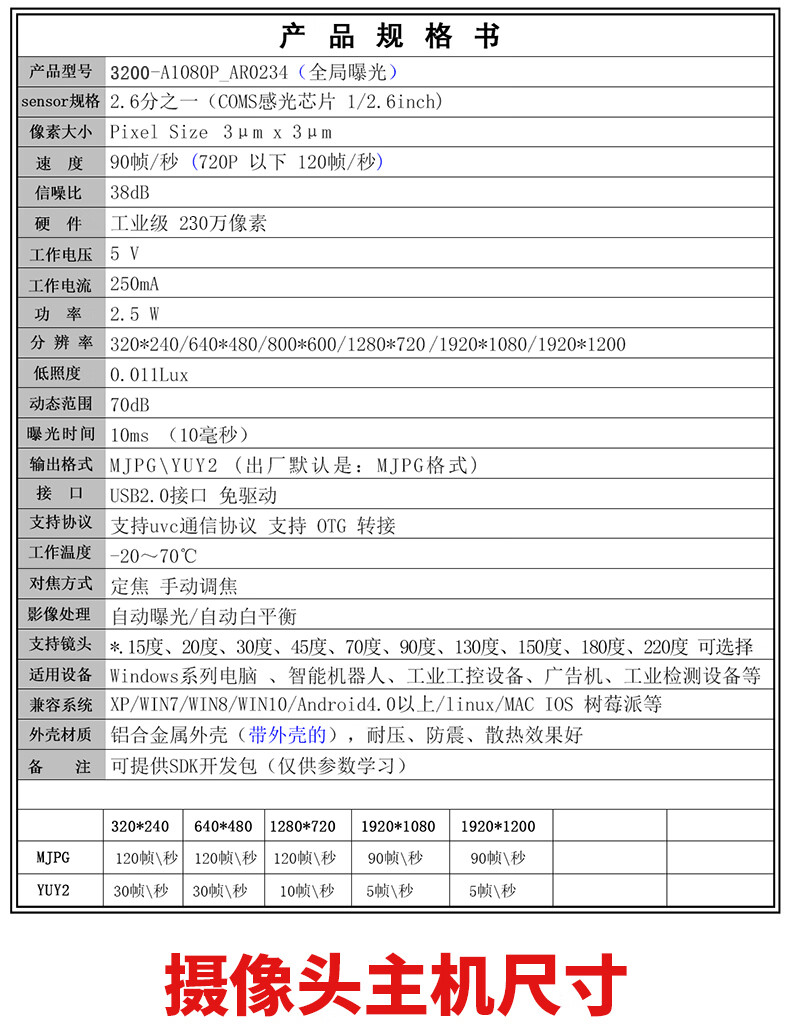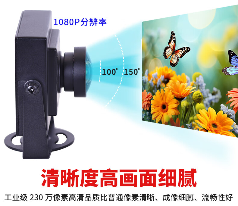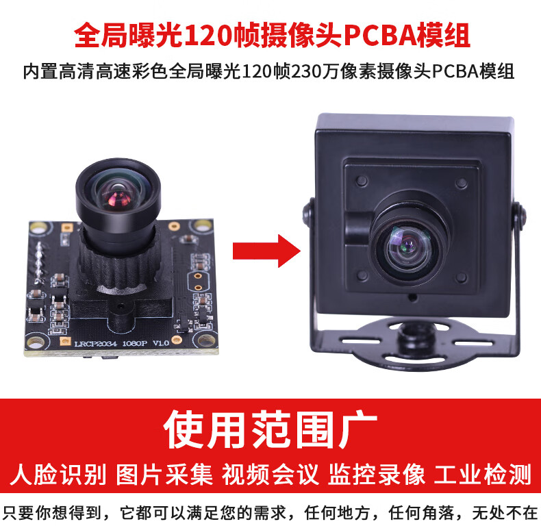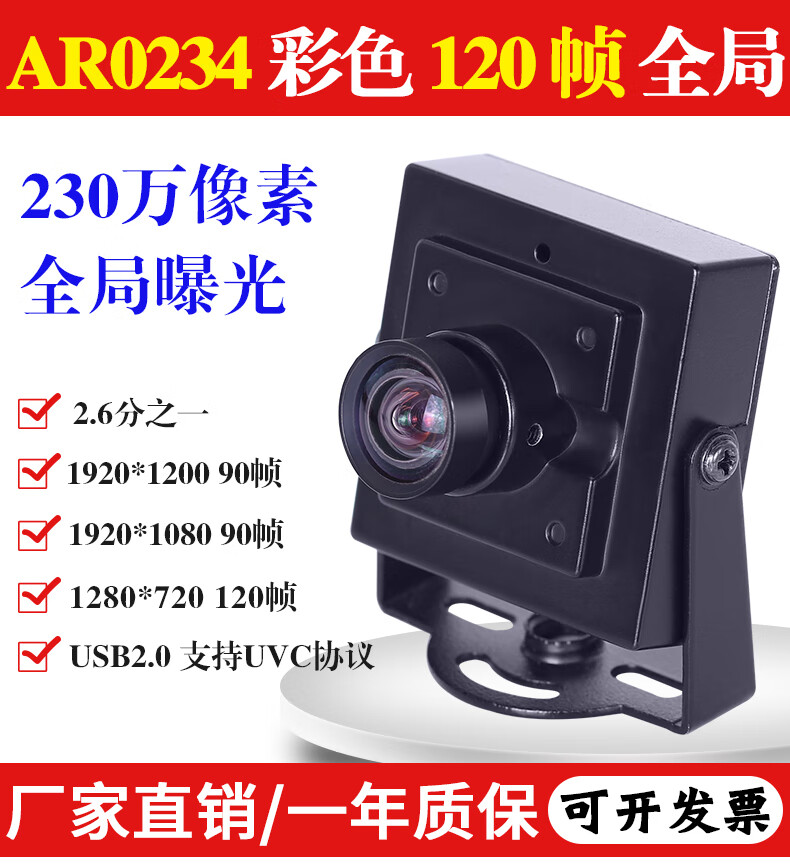 Zhongwei Aoke 1080P 2 million pixel high-speed 120 frames color global exposure supports secondary development distortion-free USB camera Android Raspberry Pi industrial camera 2.4mm 130 degrees (no distortion)
