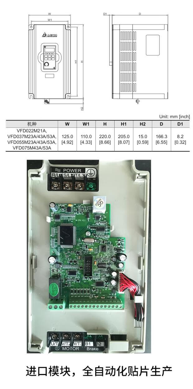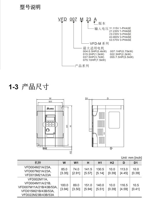 Frequency converter VFD-M 380V 0.75/1.5/2.2/3.7KW three-phase 220V VFD004M21A 0.4KW single-phase 220V