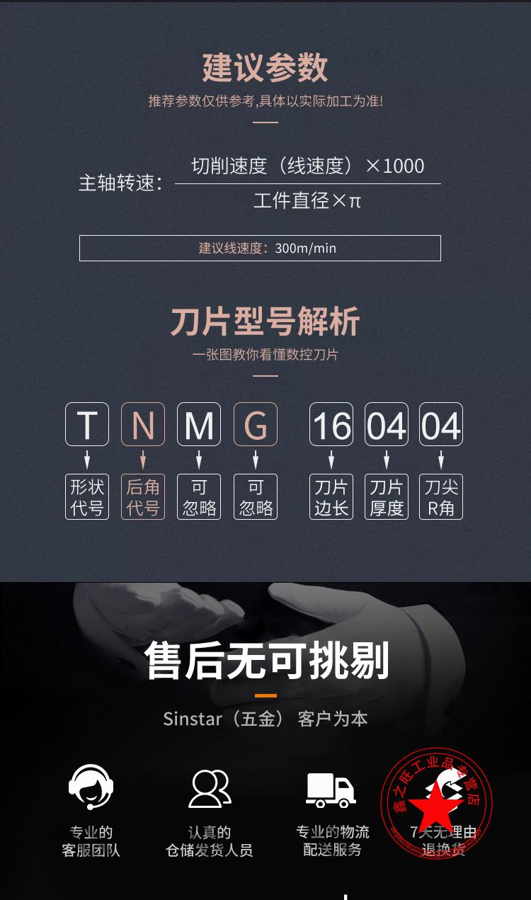 Customized suitable CNC blade quenched steel heat treatment hardened material turning blade triangular peach-shaped outer circular cutter head super-hard blade TNMG160404-TF (quenching material R0.4 angle)