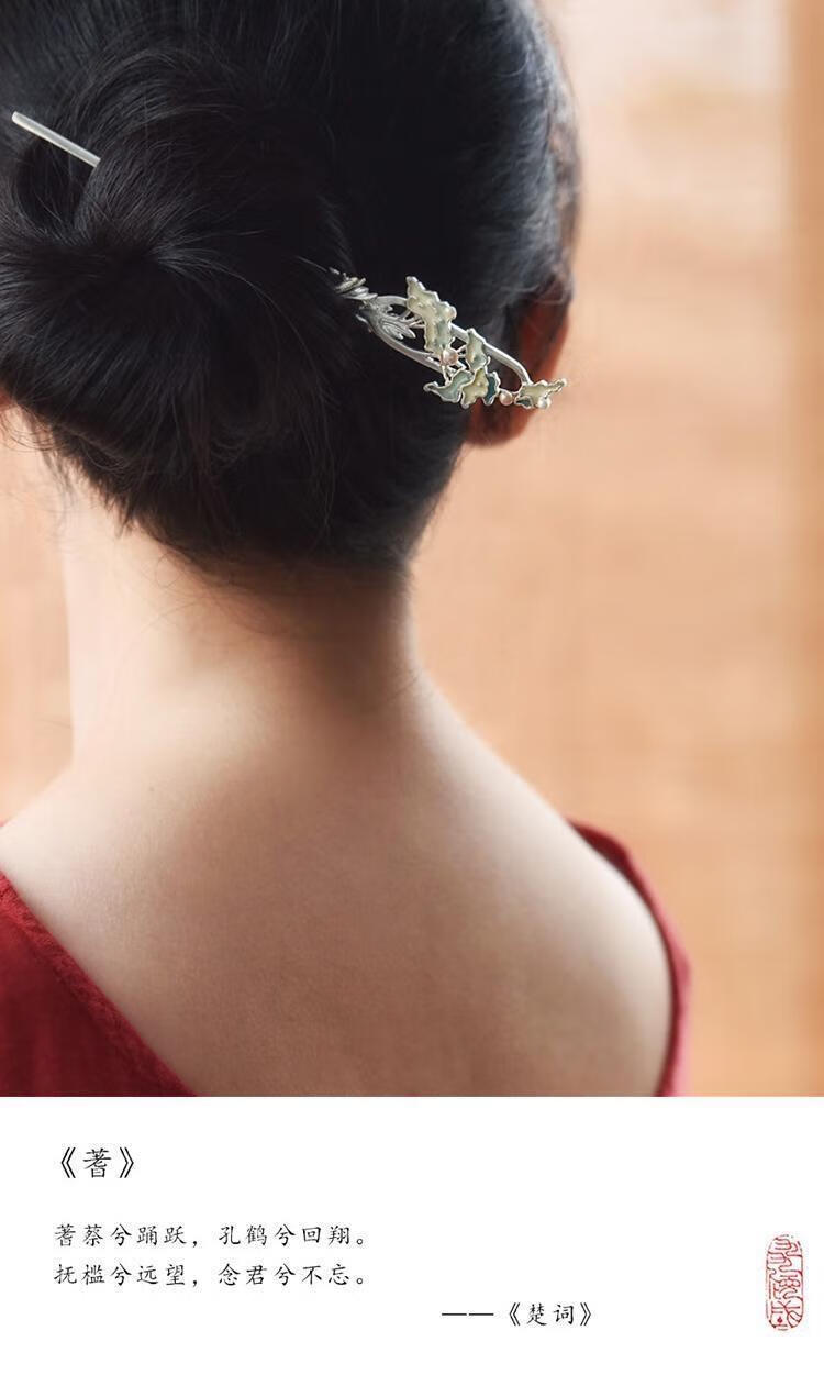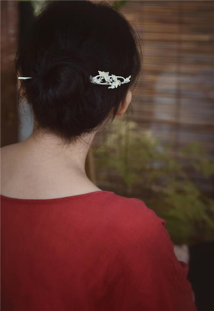 GOYN Osmanthus burnt blue sterling silver hairpin one-word hairpin high-value women's ethnic style hairpin national style ins style hair accessories Osmanthus burnt blue hairpin