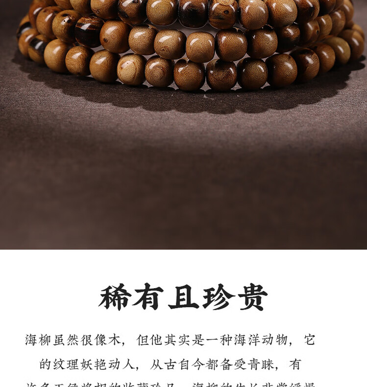 T&U guaranteed price natural sea willow bracelet for women, original color multi-circle Buddha beads, old material black coral blood willow bracelet, round bead style 8mm, 108 beads