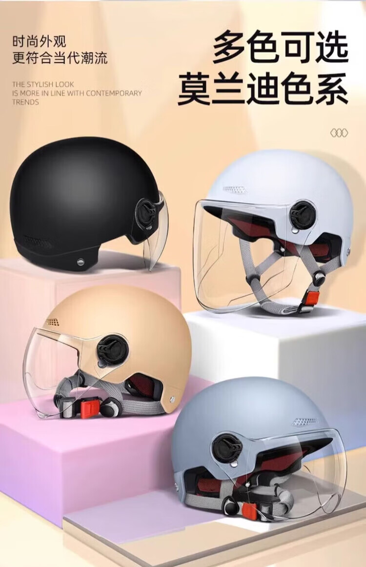 Gefan's new national standard electric vehicle helmet for men and women for all seasons, universal battery vehicle helmet, anti-fog and lightweight, 3C certified 318-matte black, transparent short mirror