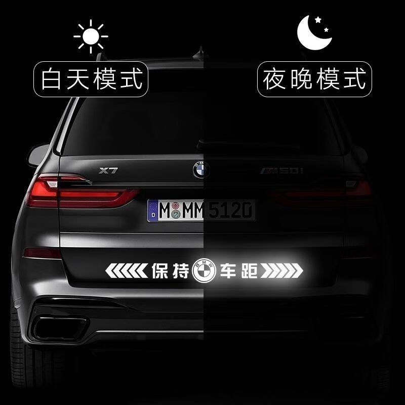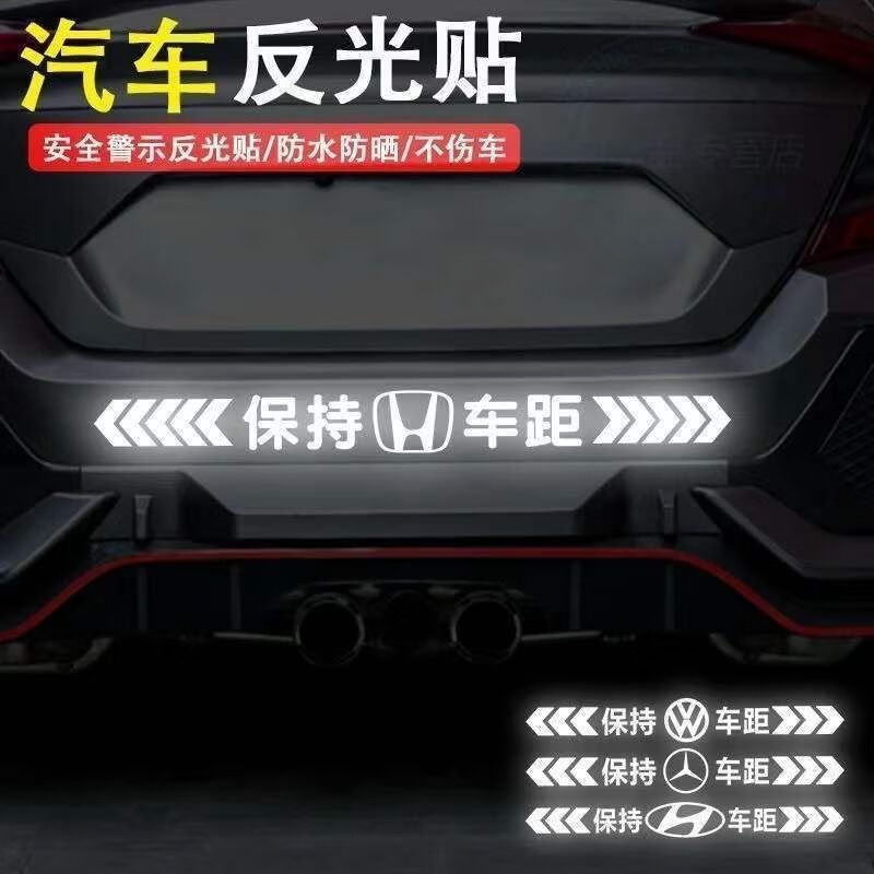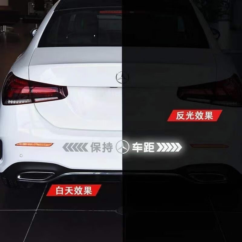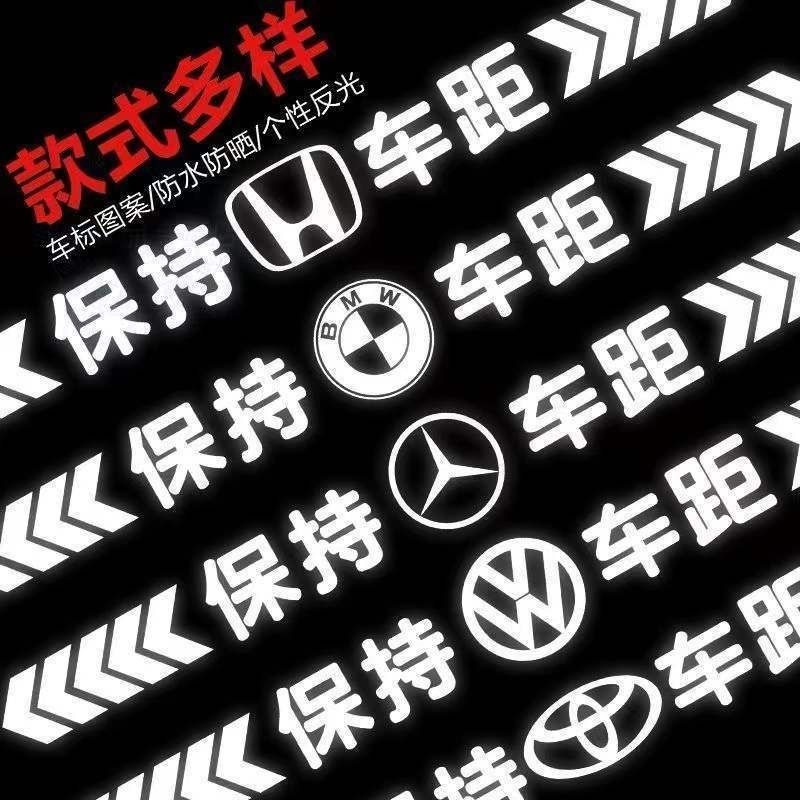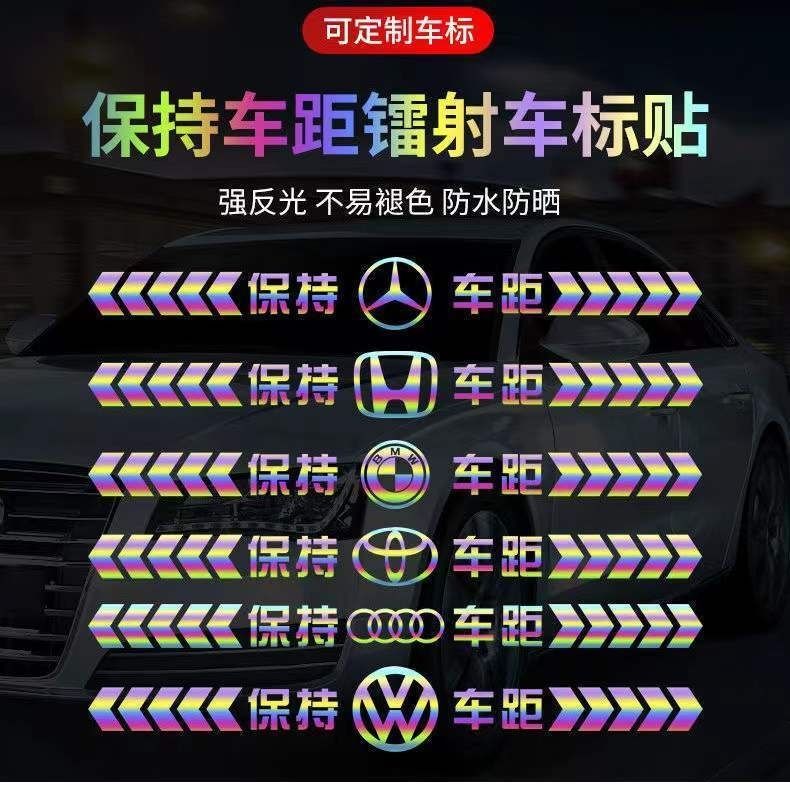 Tucker is suitable for keeping car distance reflective car stickers, colorful laser safety warning car tail stickers, bumpers, rear gear car logo reflective, strong reflective silver white 50cm*5cm, strong reflective - keep car distance, other models
