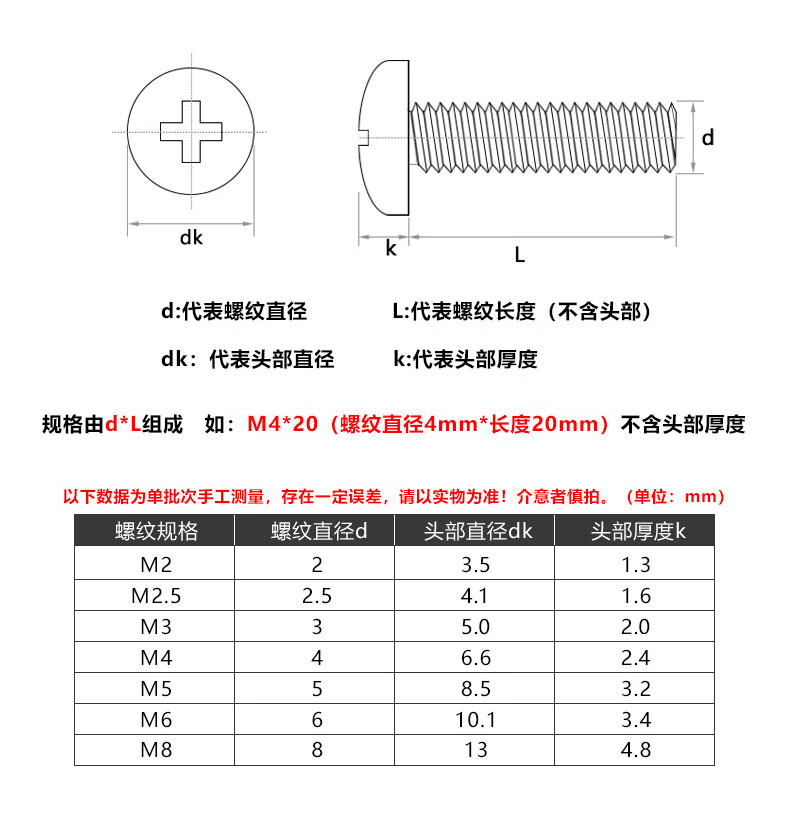 Guwanji 304 stainless steel cross round head screw pan head cross bolt machine tooth small screw switch socket extension screw M3x28 50 pieces