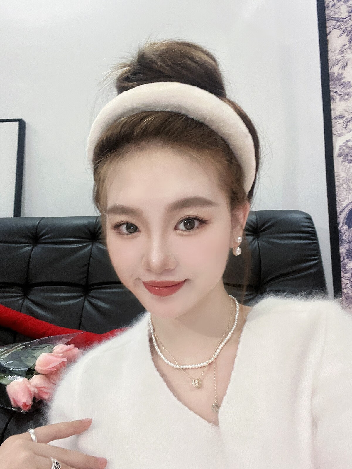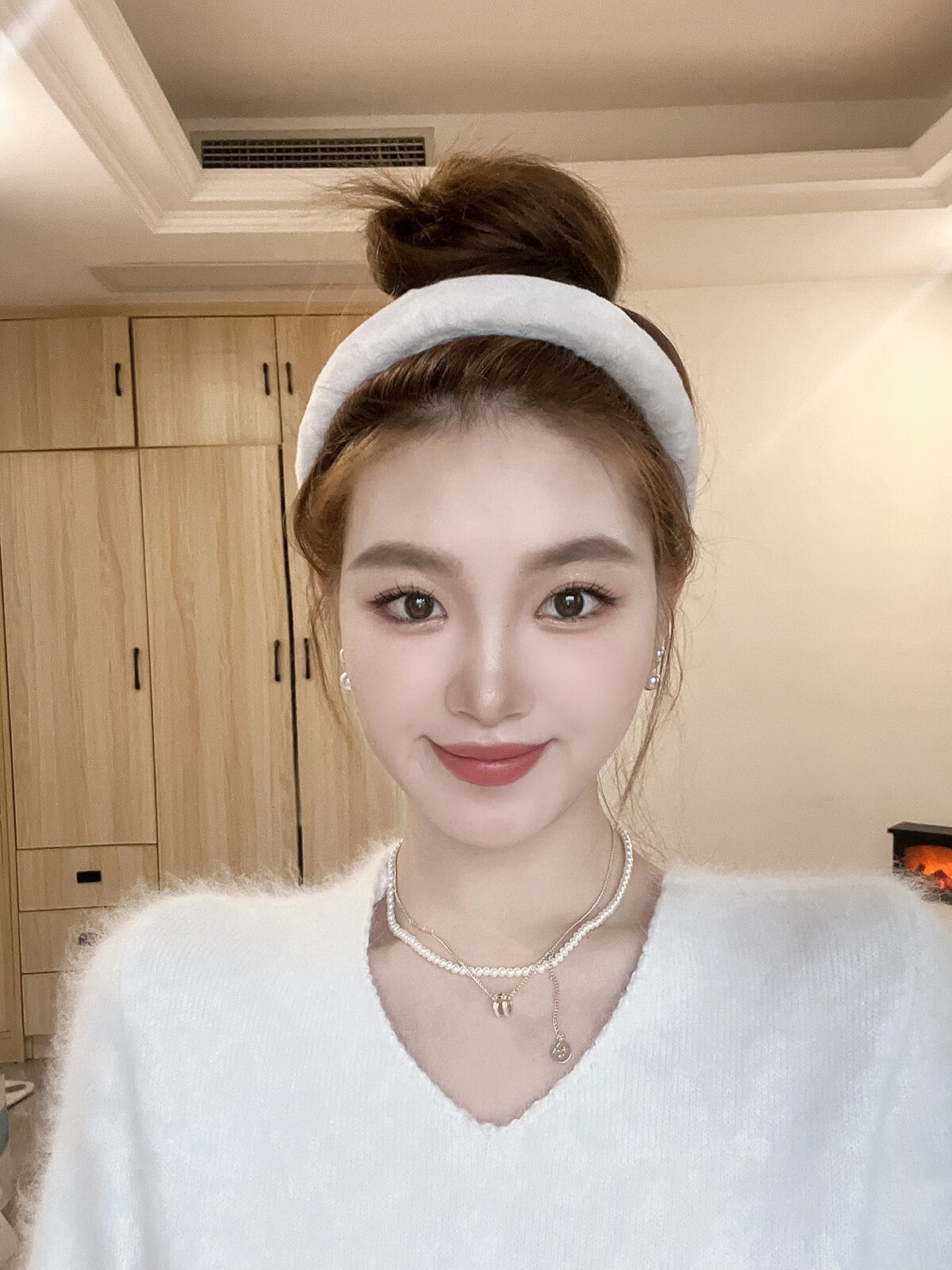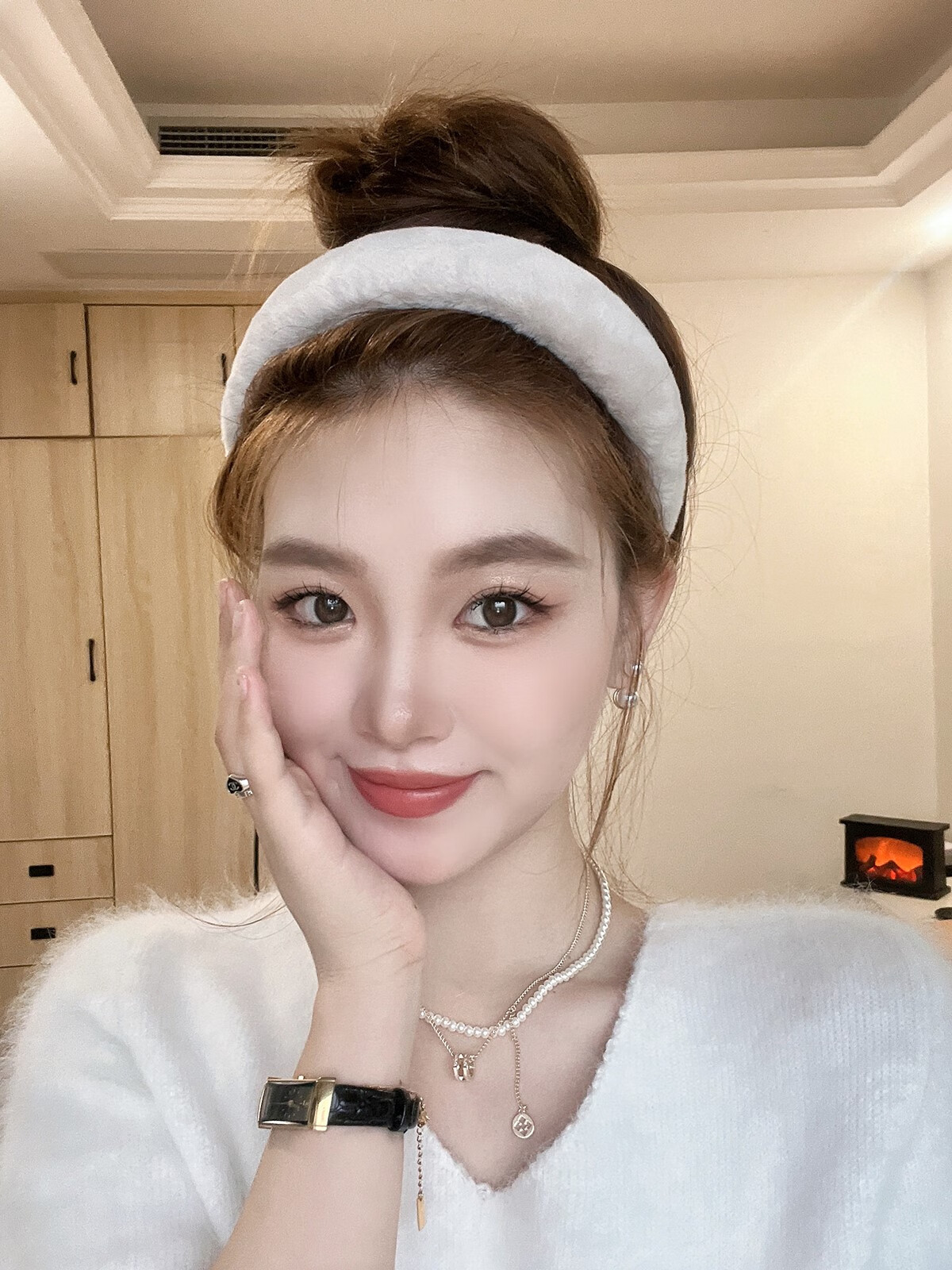 SNQP white plush hairpins, hair bundles, summer women's hair hoops, 2024 new Internet celebrity hair headbands, high cranial trend, goddess beige hair hoops, high cranium, no head jamming