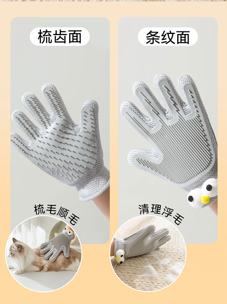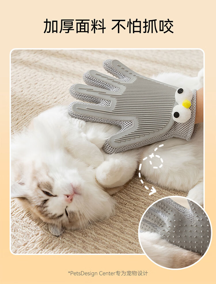 Cat Gloves, Cat Comb to Remove Flooded Hair, Special Combing Brush for Long-haired Cats, Dog Hair Cleaning Brush, Pet Supplies, Brown Cat Claws - Right Hand (front for petting the cat, back for bathing)