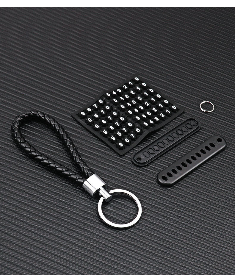 Tucker is suitable for car keychain head anti-lost mobile phone number plate pendant braided hand rope remote control 8-character horseshoe buckle gray + hand rope black + number card black