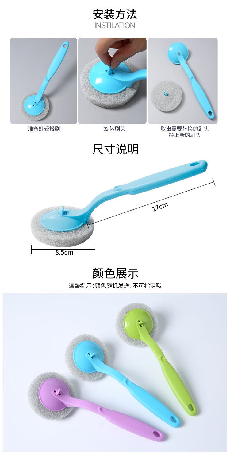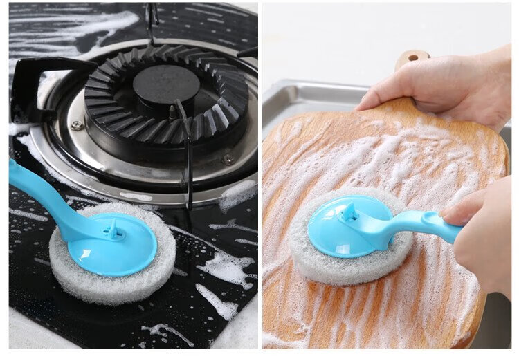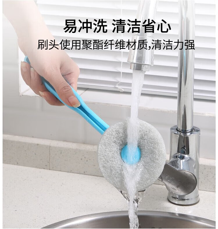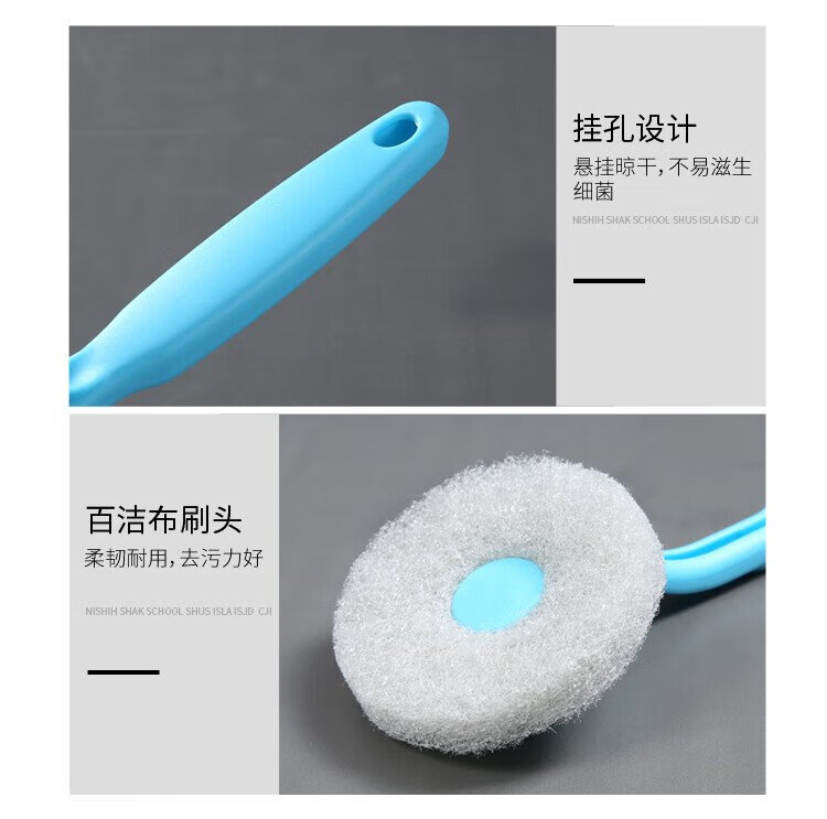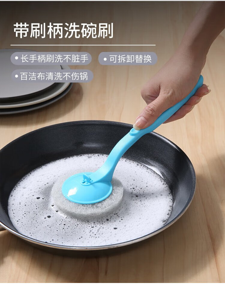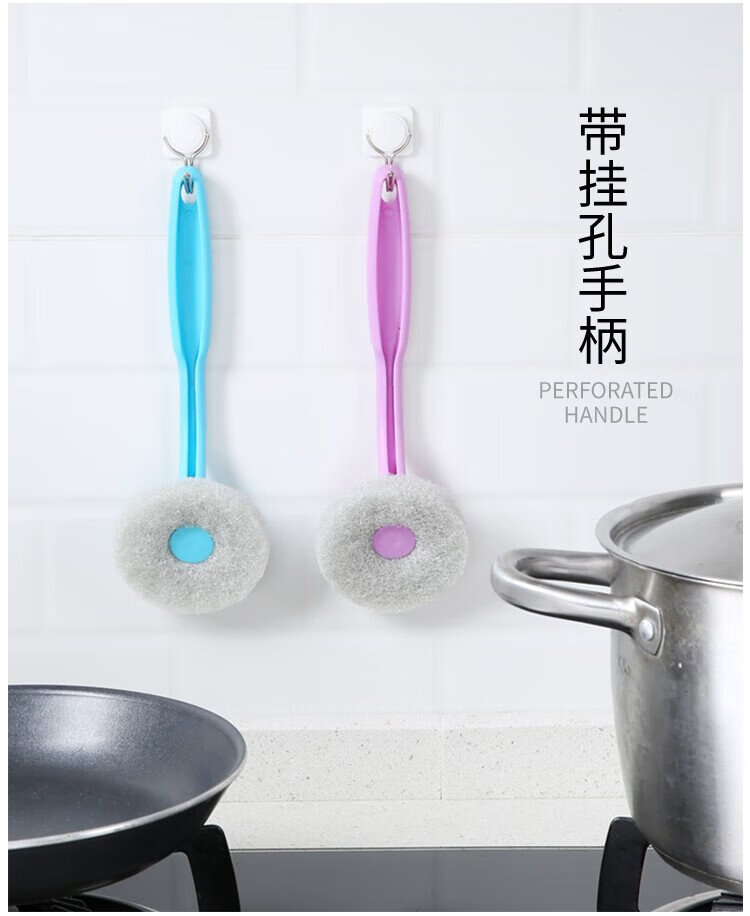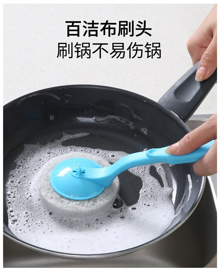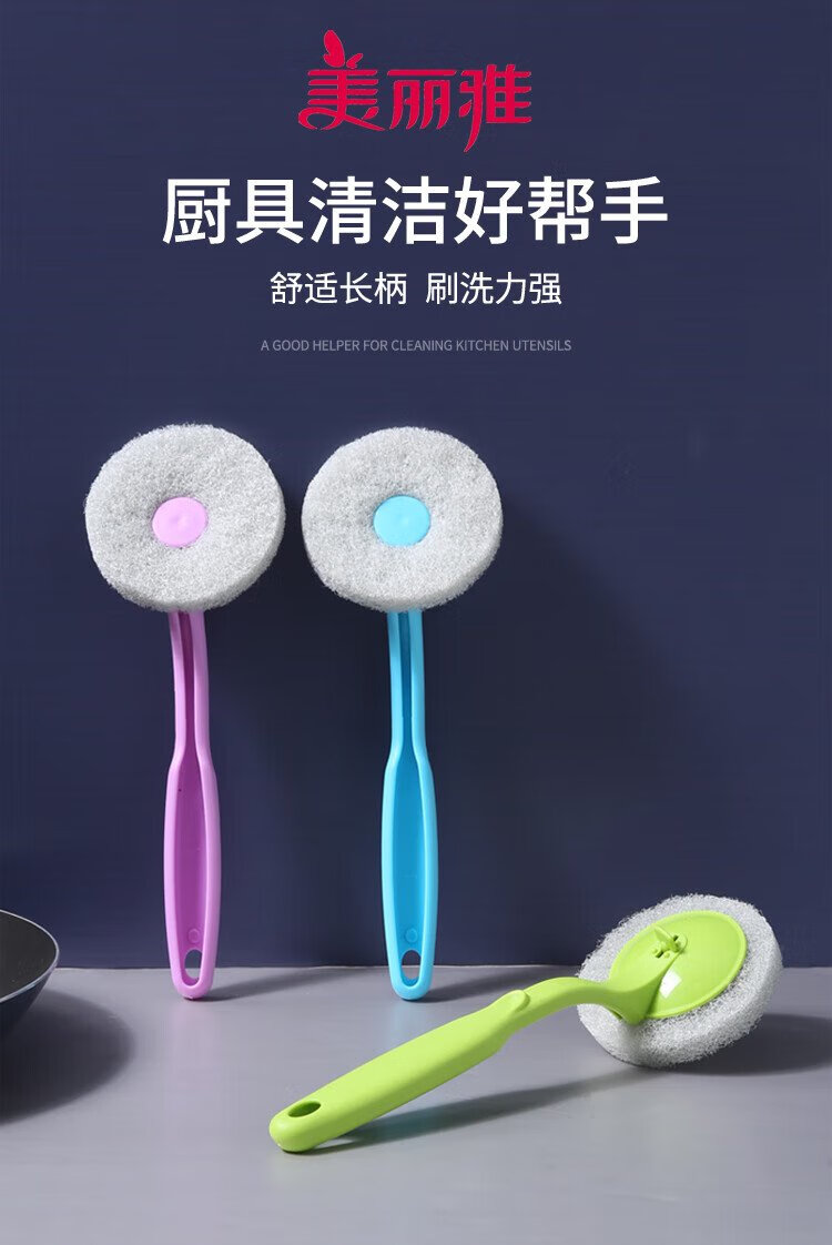 Meliya long-handled pot brush for household non-stick pots, specially used for wiping kitchen sinks and stoves, decontamination, not easy to stain oil, cleaning brush does not damage the pot (1 piece) 2 brush heads in total
