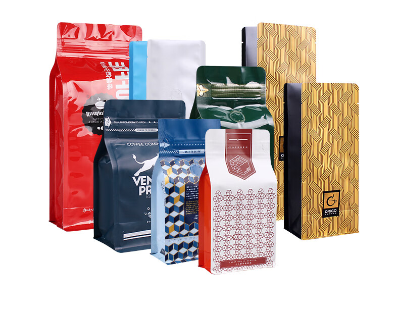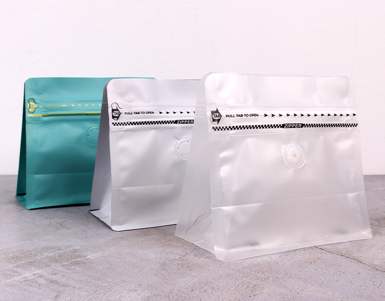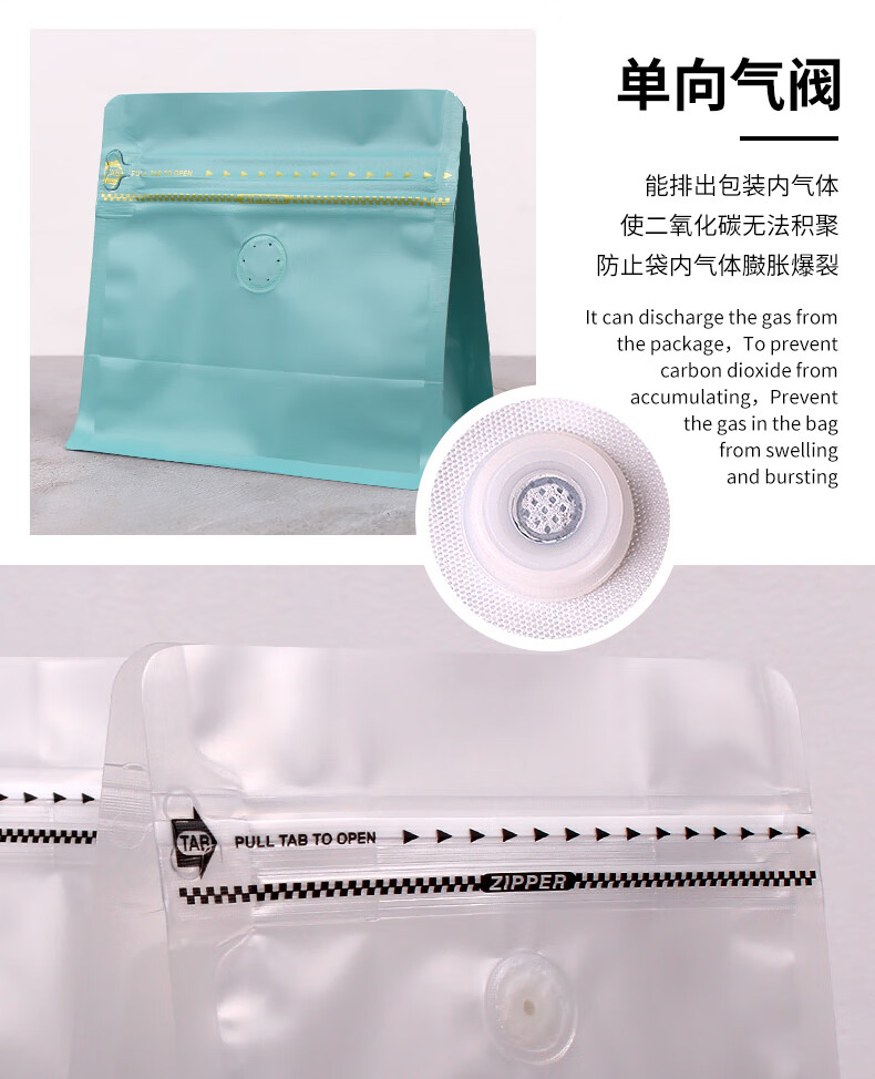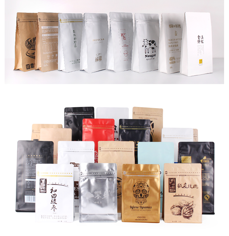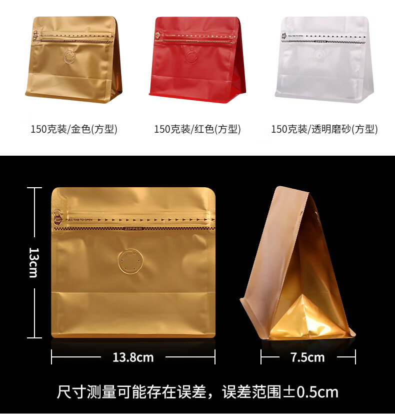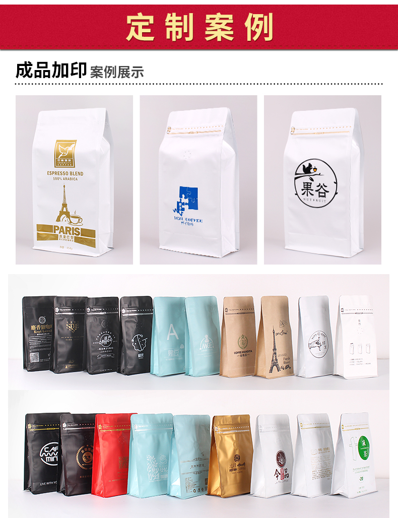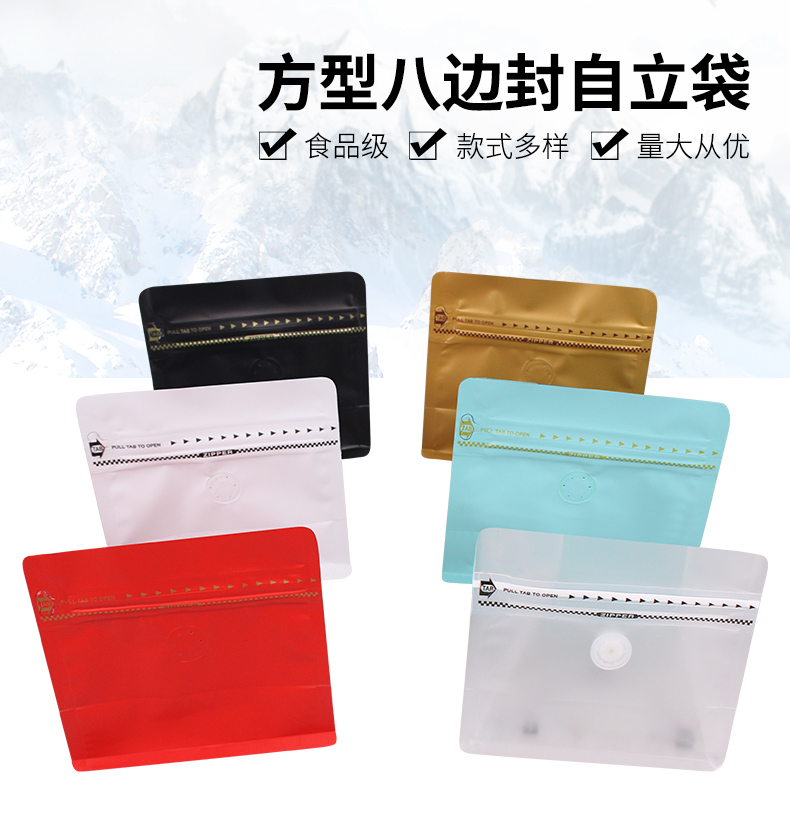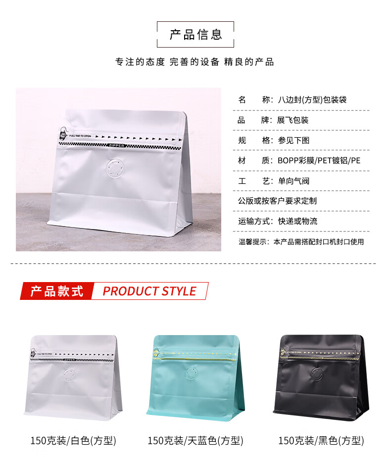 Zhanfei Packaging 150g one-way air valve coffee bean bags 10 transparent color eight-sided sealing aluminum foil coffee bean packaging bags 150g square white eight-sided sealing + air valve