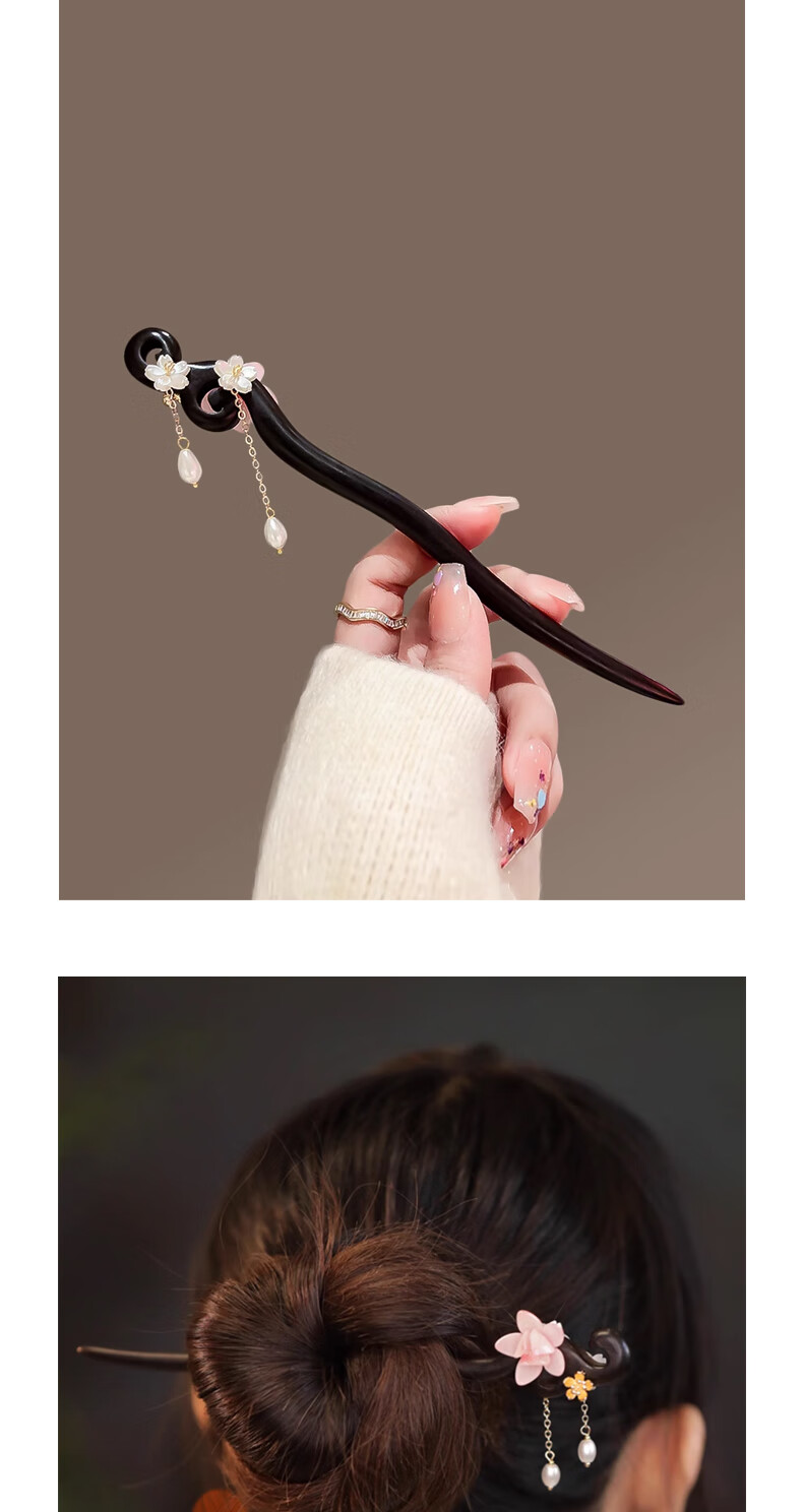 Red makeup flower hairpin for women, high-end Chinese style classical wooden hairpin, cheongsam accessories, updo hair ornaments, Christmas gifts, C1Y301 cherry blossom hairpin, 1-piece set