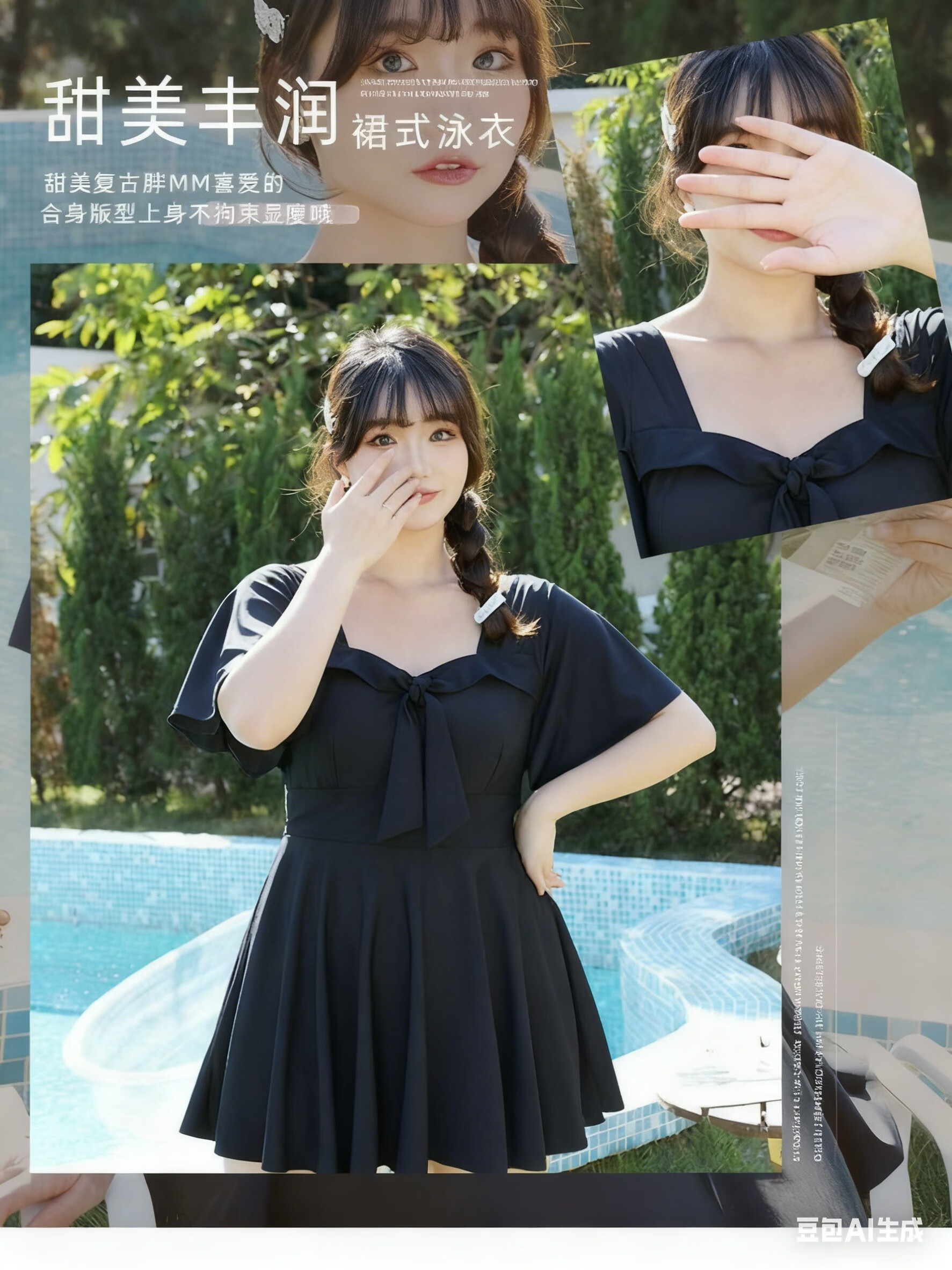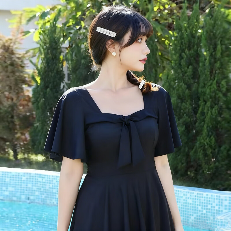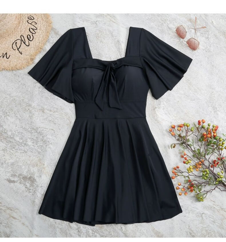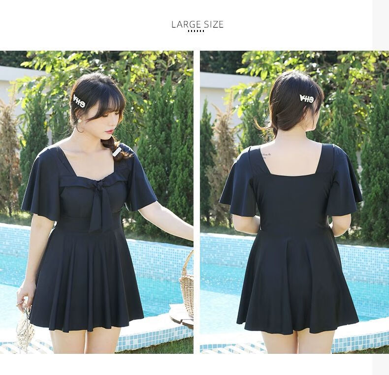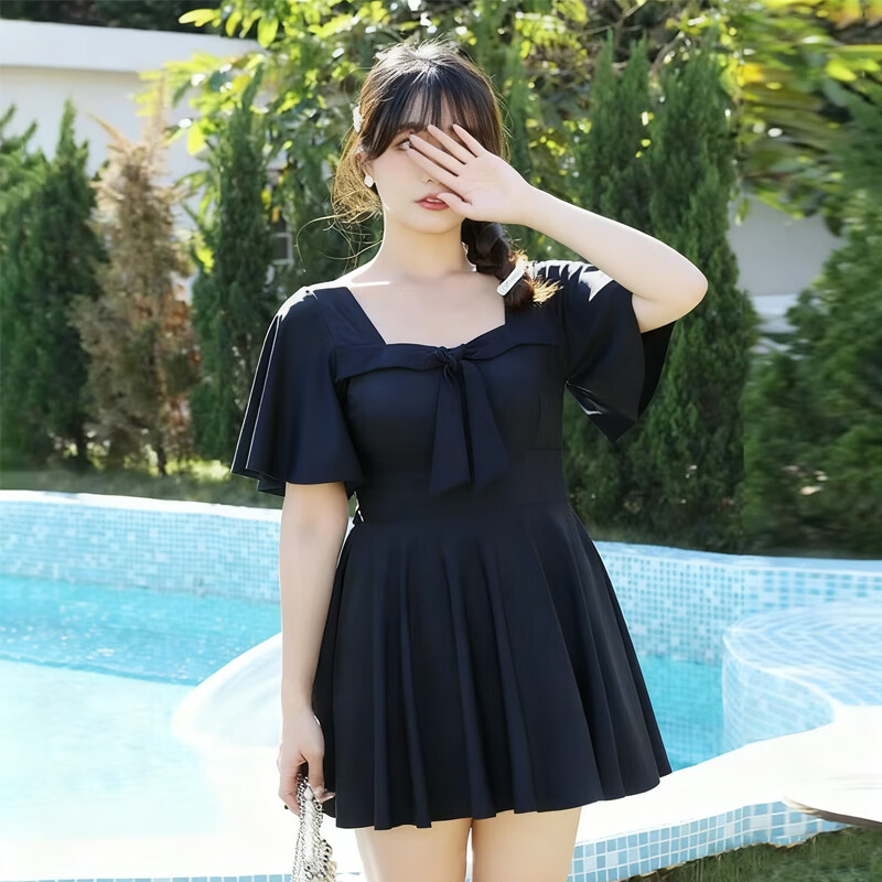 Bangbo World Plus Size Swimsuit Women's One-piece Hot Spring Covering Belly Sleeveless Sexy Slim Swimsuit Skirt Style Fat Girl Plus Size Swimsuit Bow Tie One Size (Suitable for 90 Jin Jin equals 0.5 kg -150 Jin Jin equals 0.5 kg)