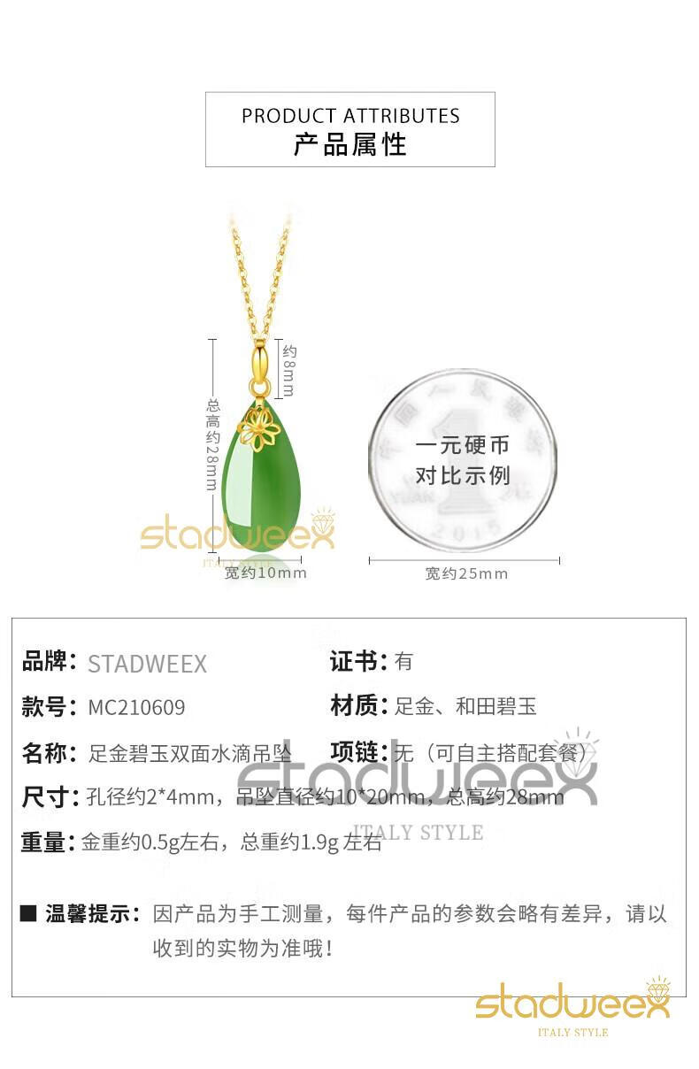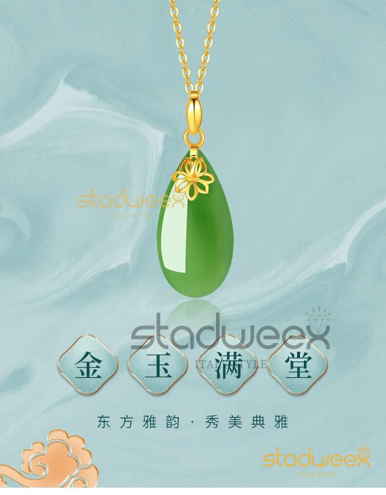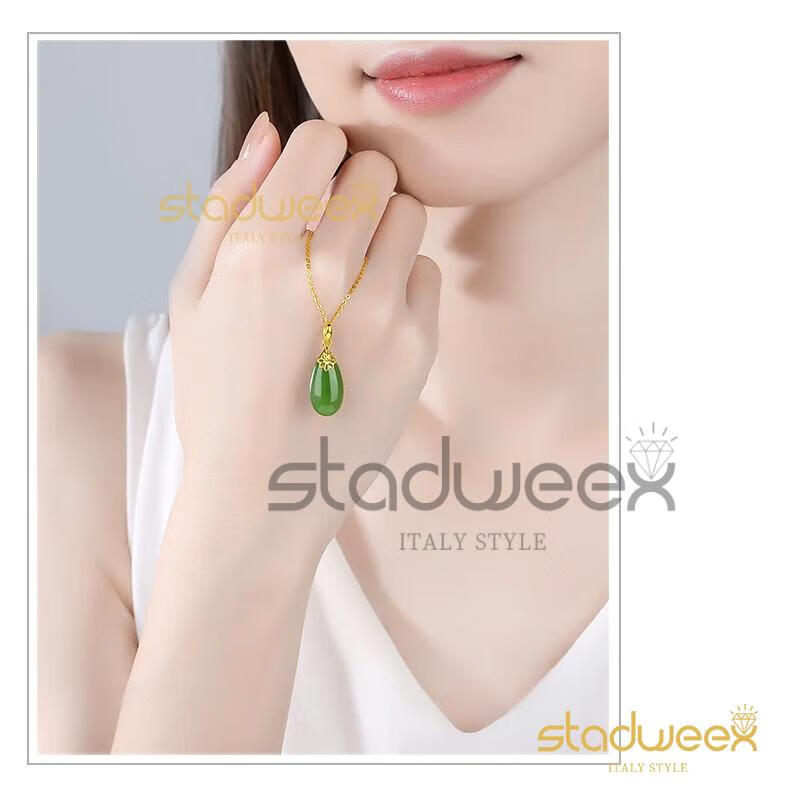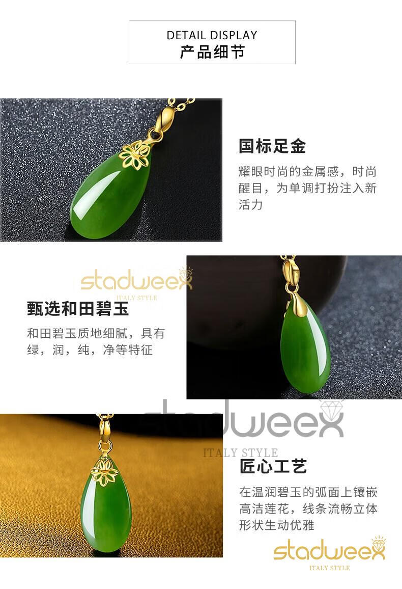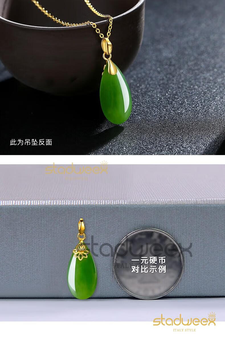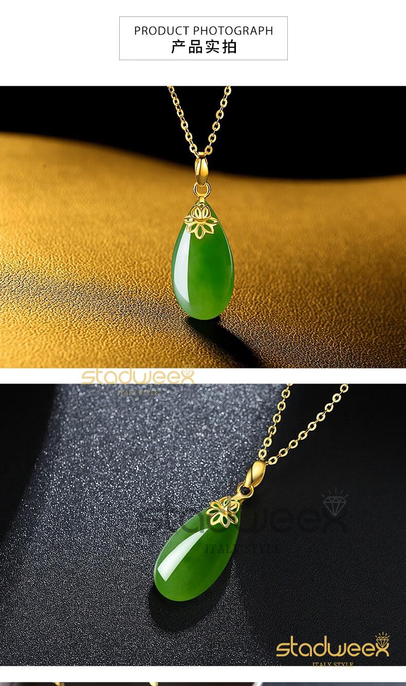 Xingdaweixi Necklace Women's Gold Inlaid Jade Pendant Hetian Jade 18 Gold 520 Gift for Mom, Wife, Girlfriend Gold Hetian Jade Pendant + 18 Gold Necklace