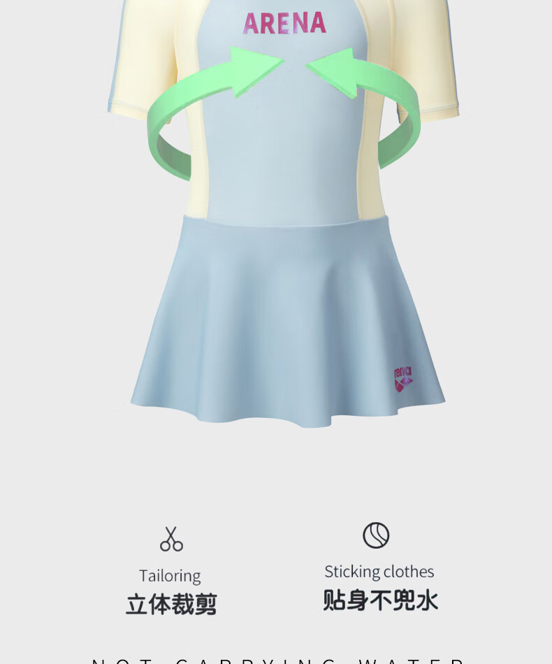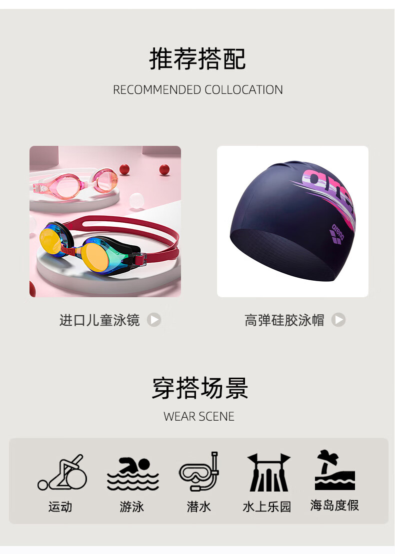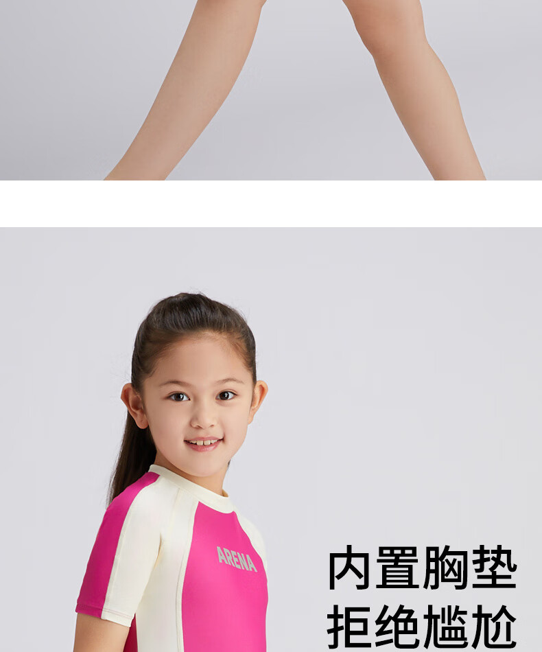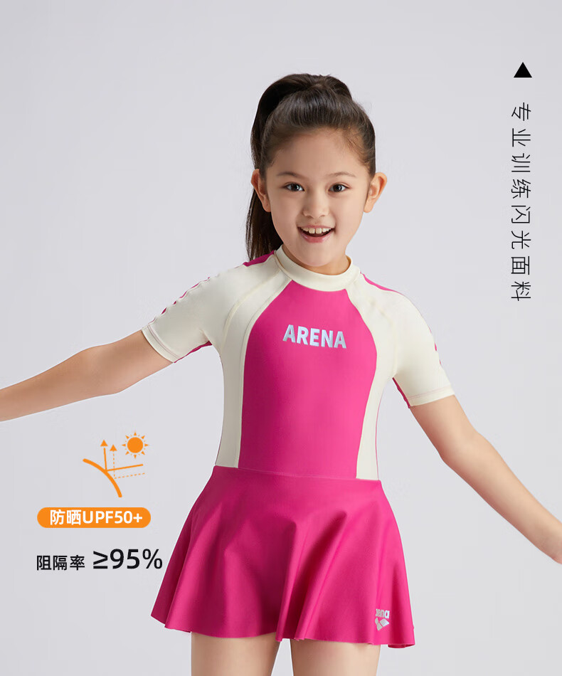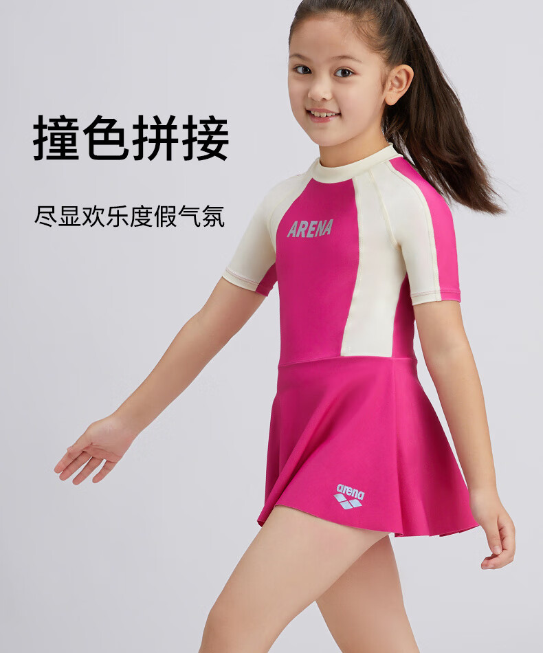 Arena Children's Swimsuit Girls Sun Protection Skirt One-piece Swimsuit for Small, Medium and Large Children Conservative Vacation 2024 New Style Pink 130 Recommended Height 125-135cm Weight 20-30kg