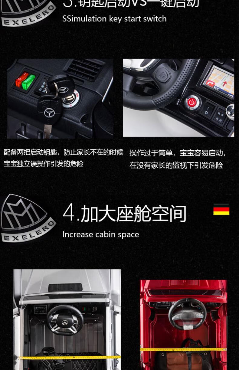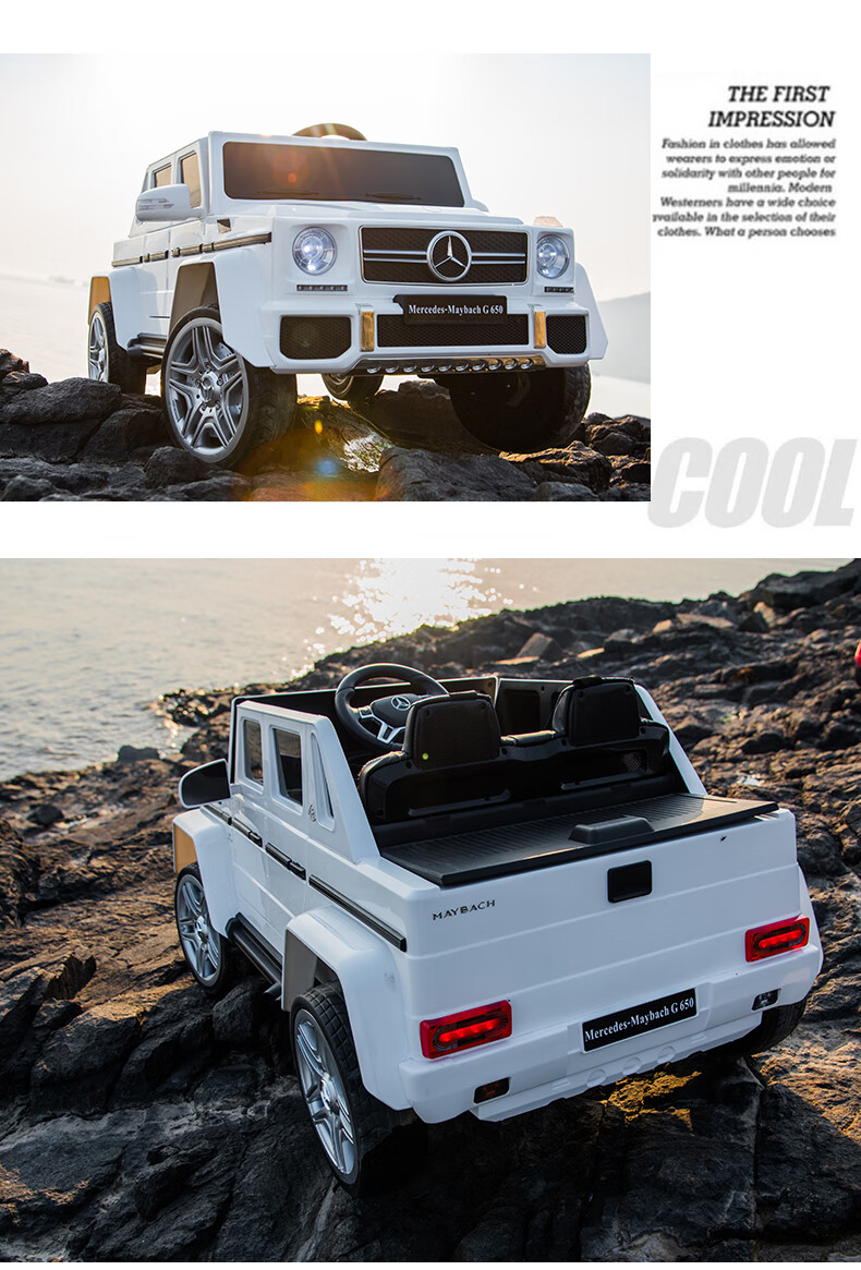 ROEH two-seater Mercedes-Benz big G children's electric car four-wheel remote control car 4-wheel drive for children and babies playing first birthday gift upgraded 12v large lithium battery pearl white electric drive (can seat adults)