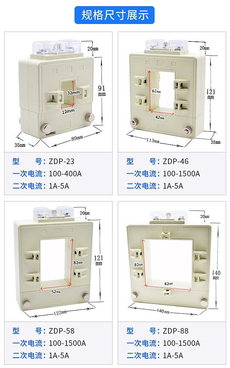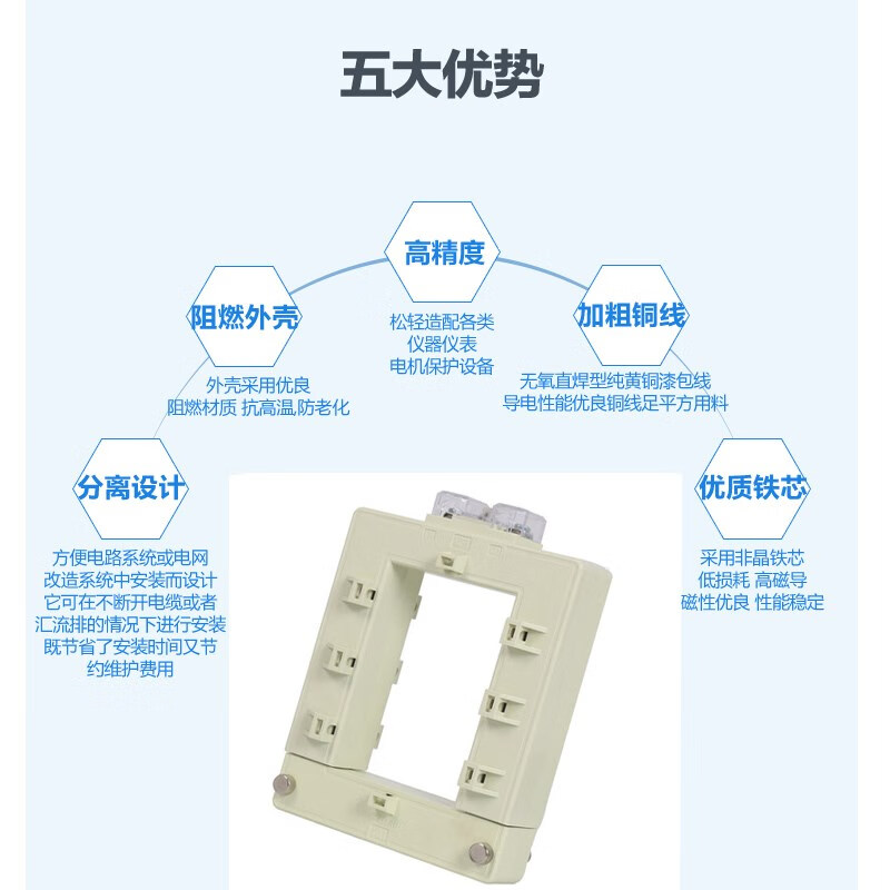 Open type high current transformer separated AC three-phase DP88 square high-precision metering copper bar 50/5A DP23 (inner hole 20*30)