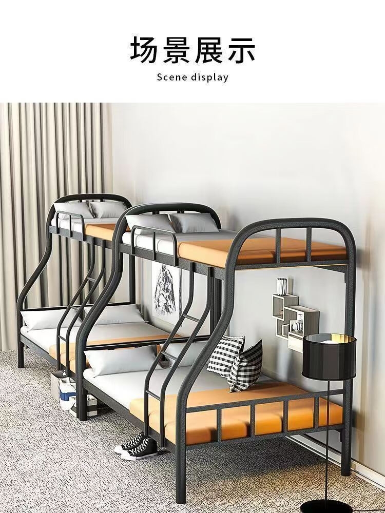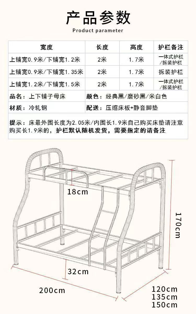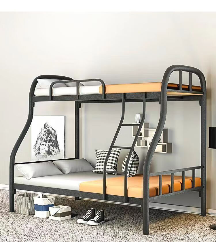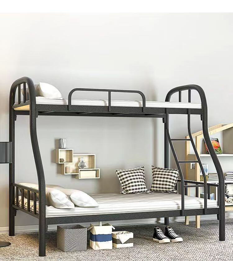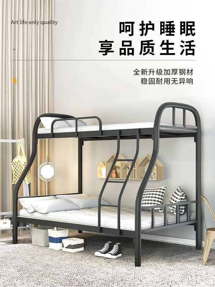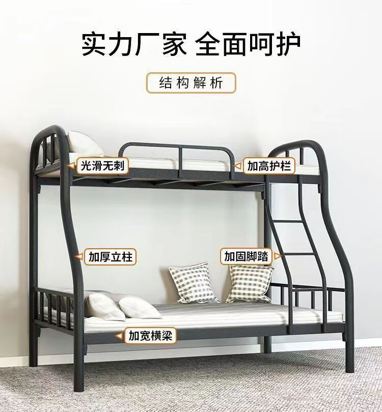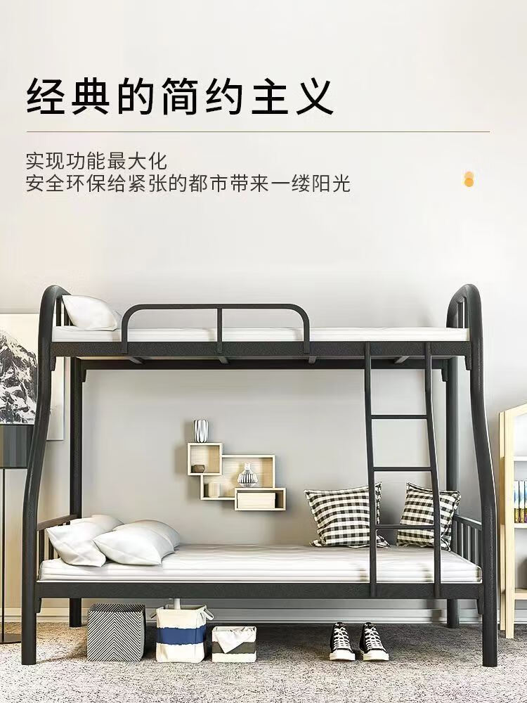 Bunk bed with bunk bed, steel wooden bed, iron frame bed, iron frame bed, thickened high and low bed, super load-bearing, classic black, upper bunk width 90/lower bunk width 120, free bed board