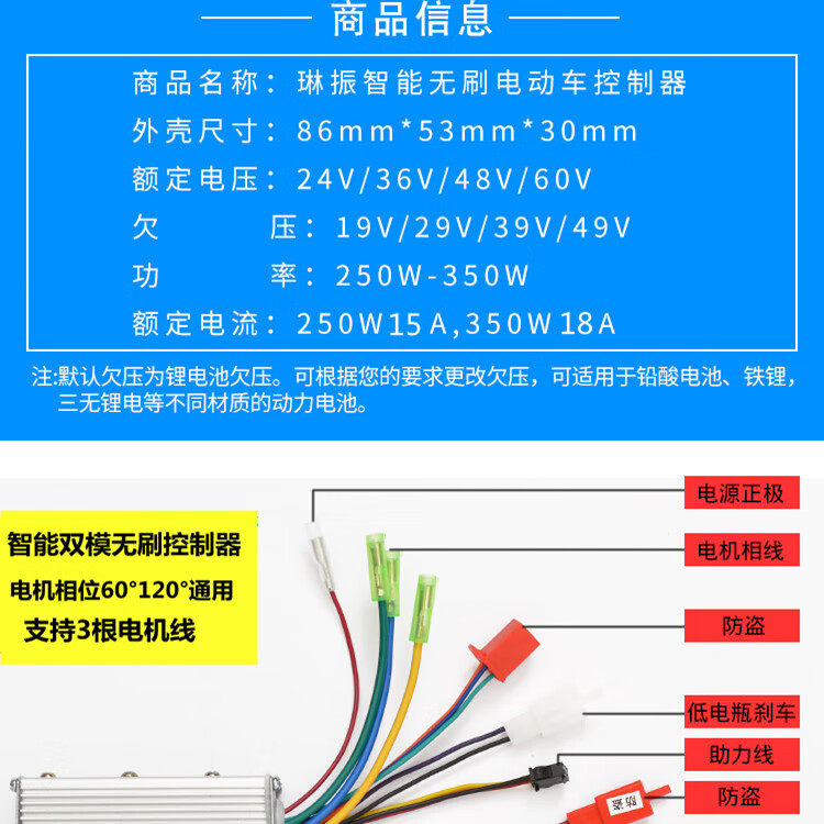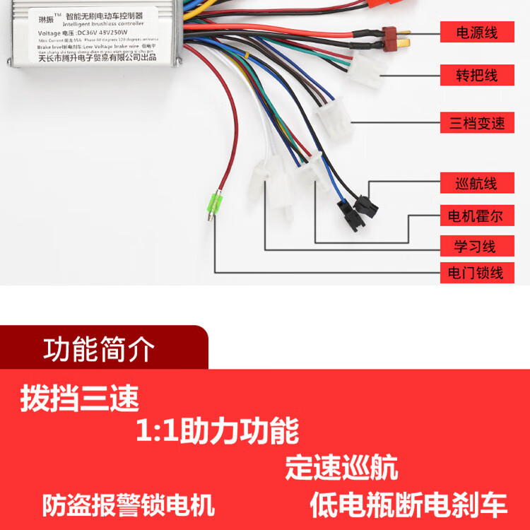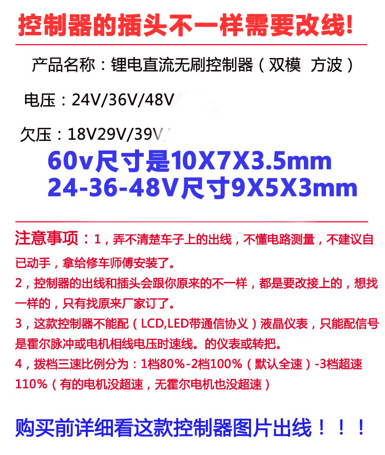 Suitable for 36v lithium battery controller 48v electric bicycle driving DC brushless motor controller 48V350W (size 10.5*6.5*3.5)