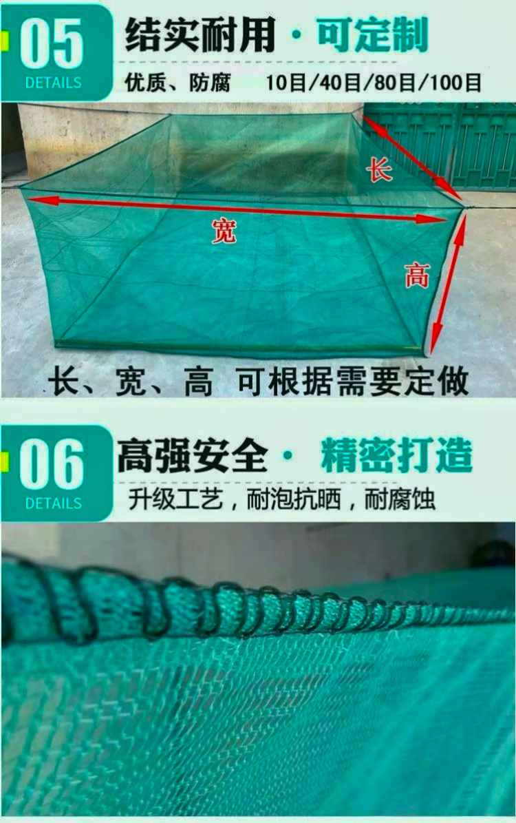 Fish farming cages, fish storage cages, bullfrog and eel fry cages, thickened cages, custom-made fishing nets, aquaculture cages, 10 mesh (3 mm mesh) stamped version, 1 meter long - 1 meter wide - 1 meter high