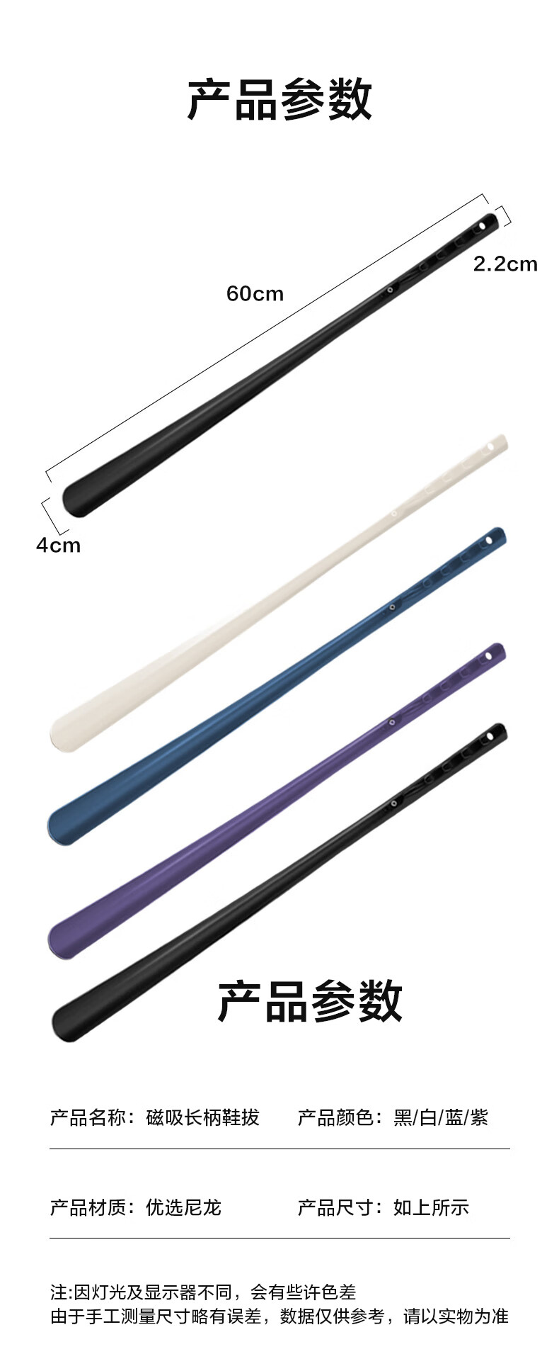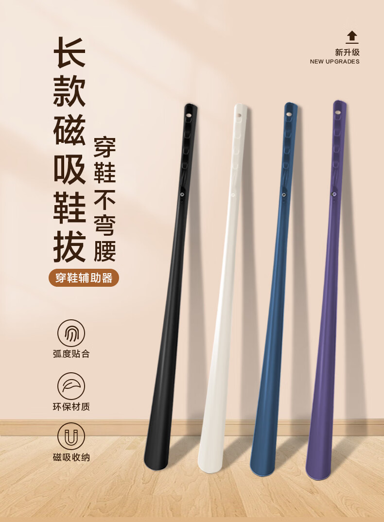 Long-handled magnetic shoehorn, high-end household shoe lifting tool, non-bending plus, auxiliary shoe lifting for elderly and pregnant women, 1 trial pack (random color) 63cm