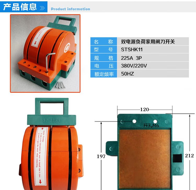 High current three-phase double-throw two-way electric switch king reverse transfer switch 380v load switch 3P 255A copper