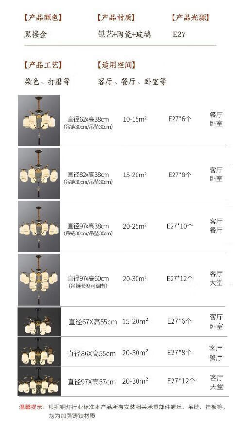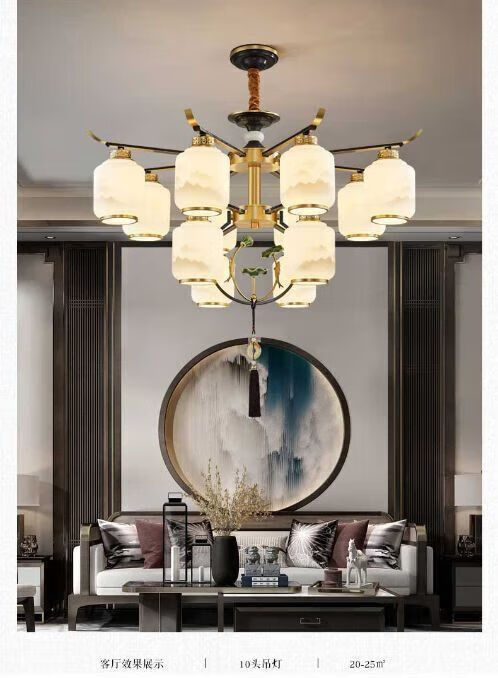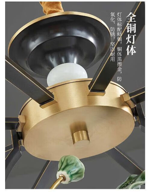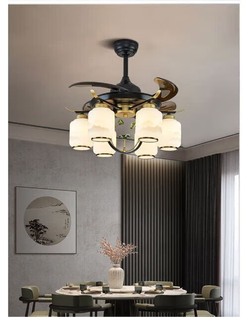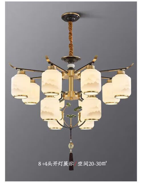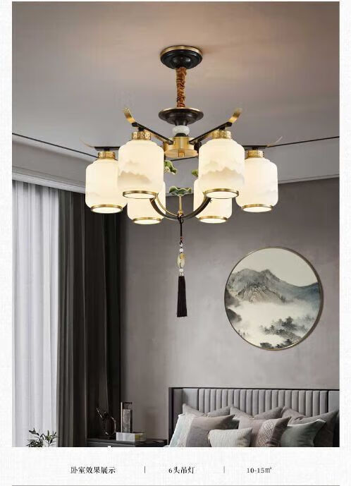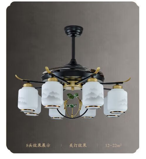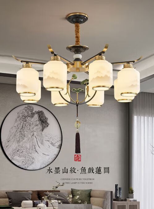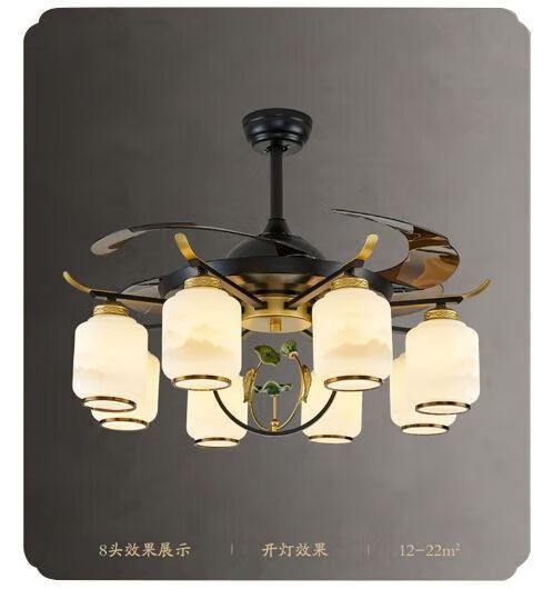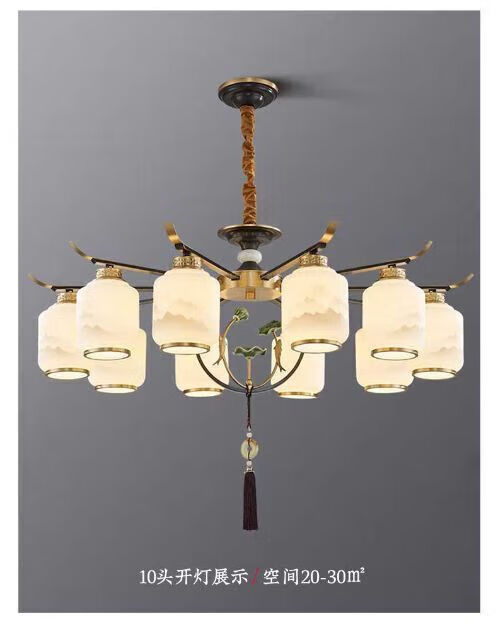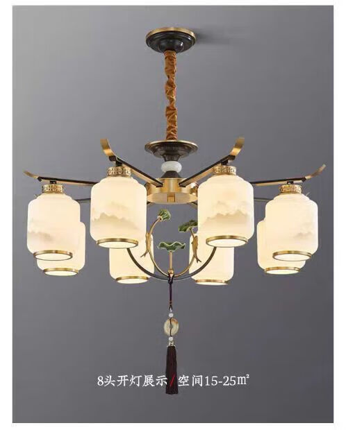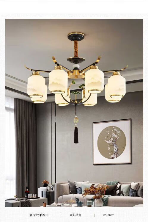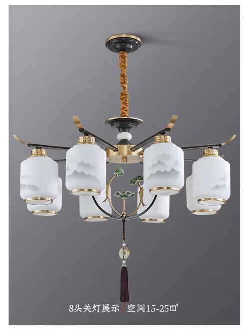 HAOYUNMA Zhongshan lighting flagship Zhongshan Foshan Chinese chandelier living room lamp hall Chinese Phoenix Zen villa lighting restaurant iron art 8-head ceiling diameter 82*height 38cm-three