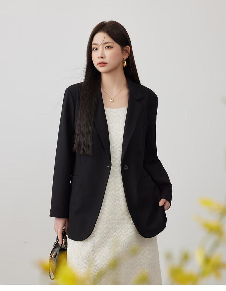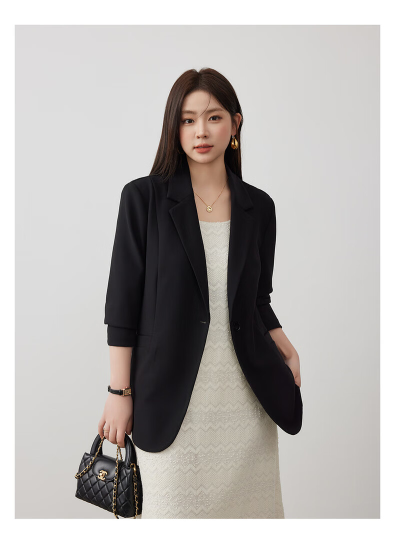 Xianlixiu spring new style plus size women's clothing for fat mm, high-end temperament, commuting, versatile, stretchy and comfortable solid color suit 4133 black 2XL
