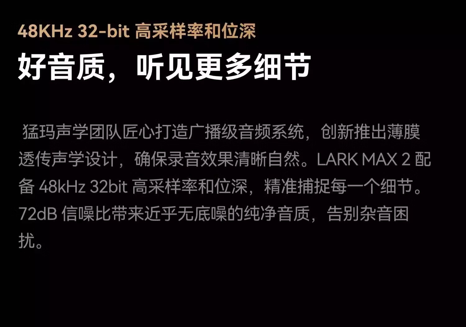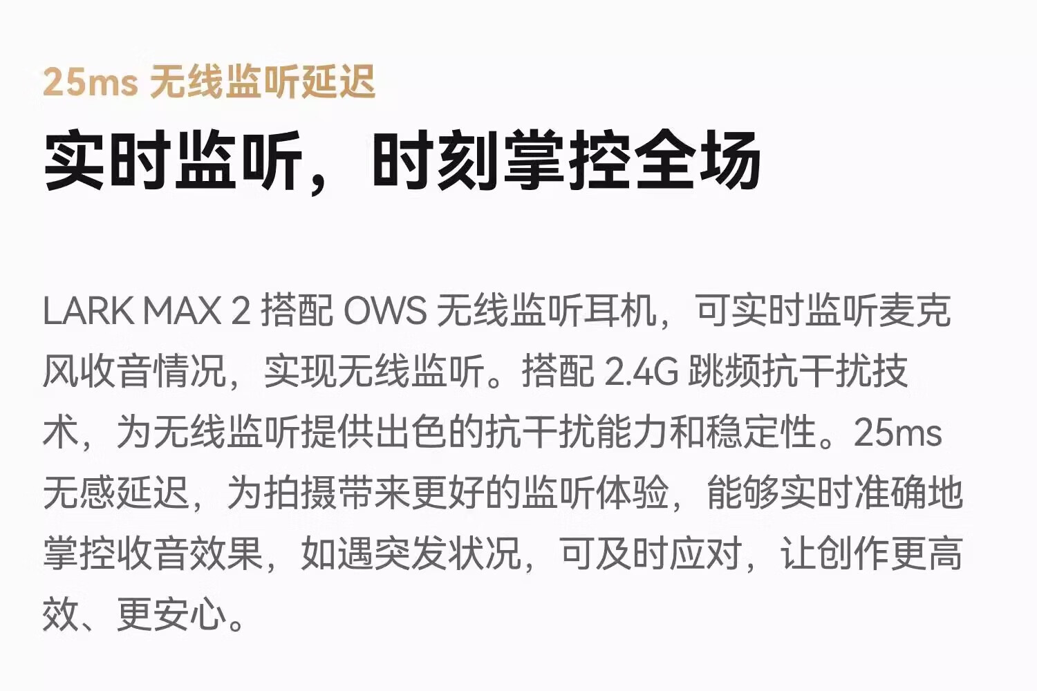 Mammoth Lark MAX2 one-to-two wireless monitoring lavalier microphone radio microphone Little Bee camera SLR mobile phone audio collection Mammoth one-click noise reduction lavalier microphone cable (exclusive for the first generation Lark Max)