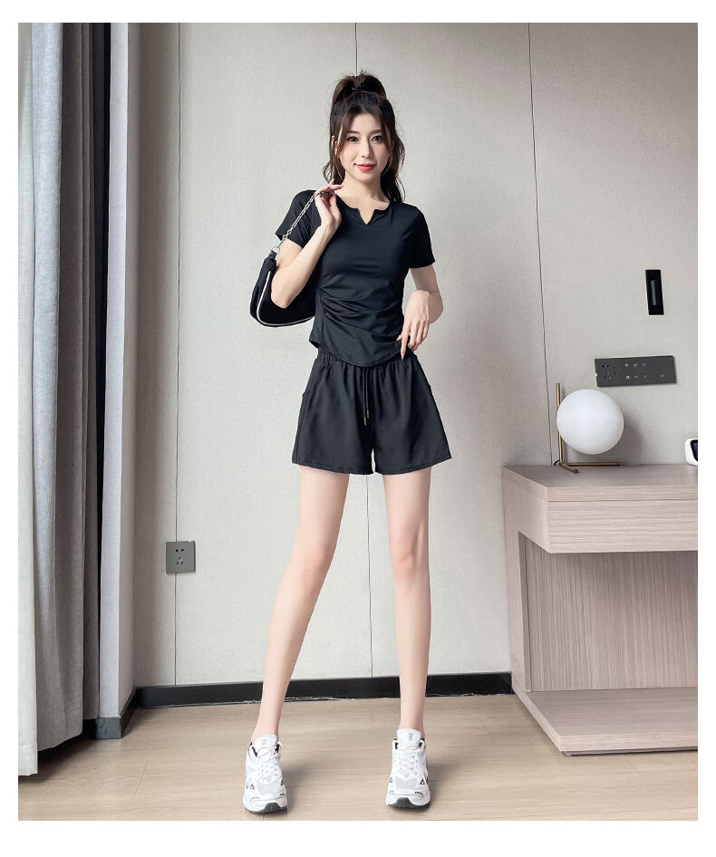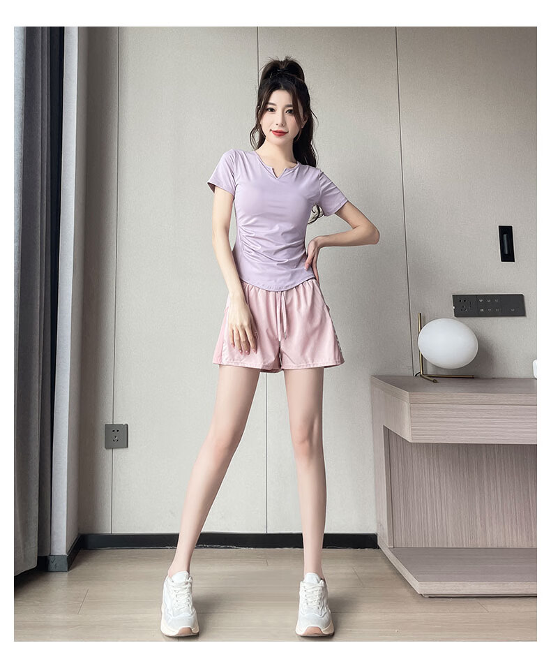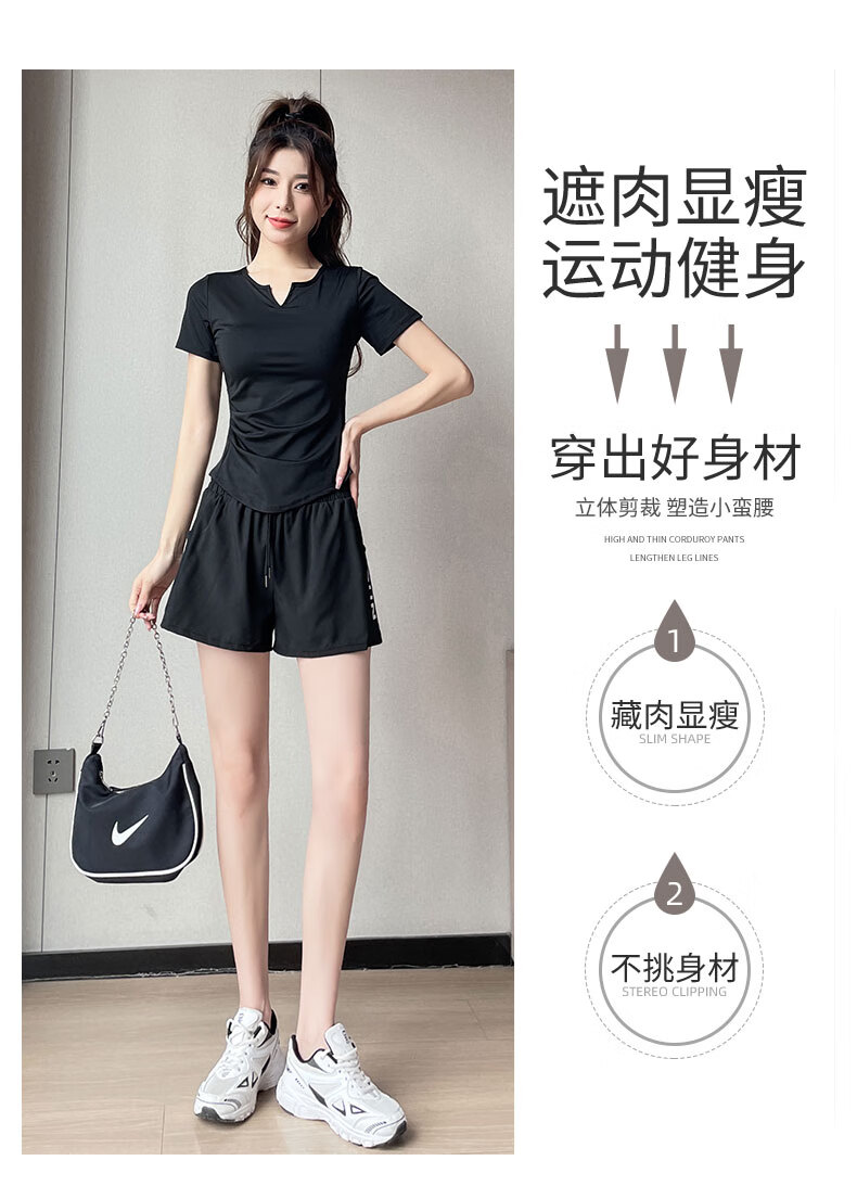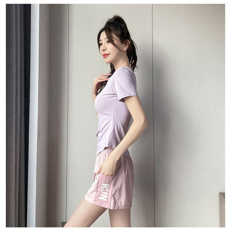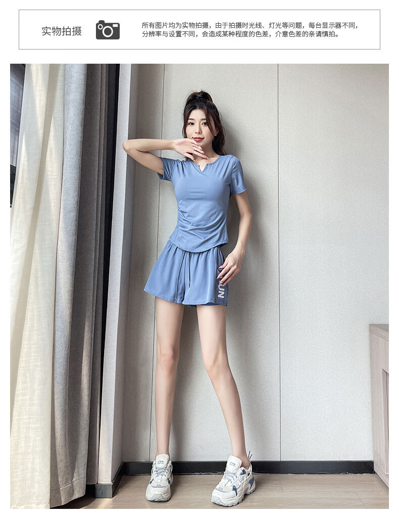 Aimengniao fitness running quick-drying sports suit for women 2024 summer thin sportswear hiking clothes Pilates yoga clothes for women suit blue + blue L (refer to bust and waist for size selection)
