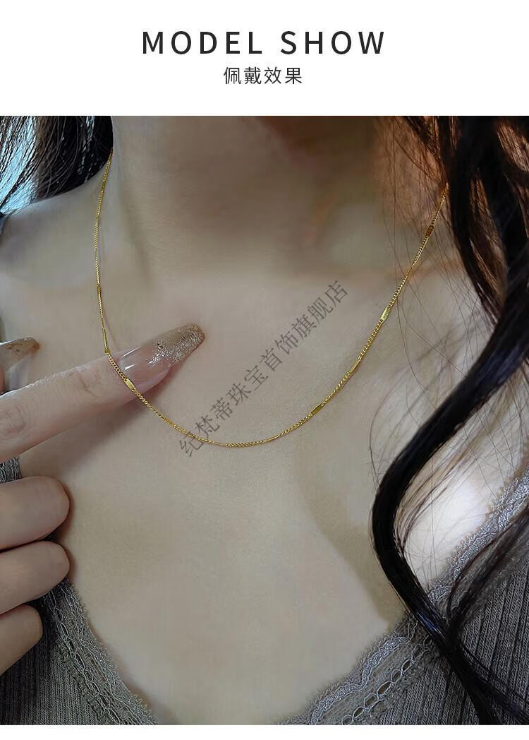 Giventy GEFIODEY fine color gold 18k bag gold necklace women's chain plain chain titanium steel non-fading clavicle chain chain pendant-free segment chain