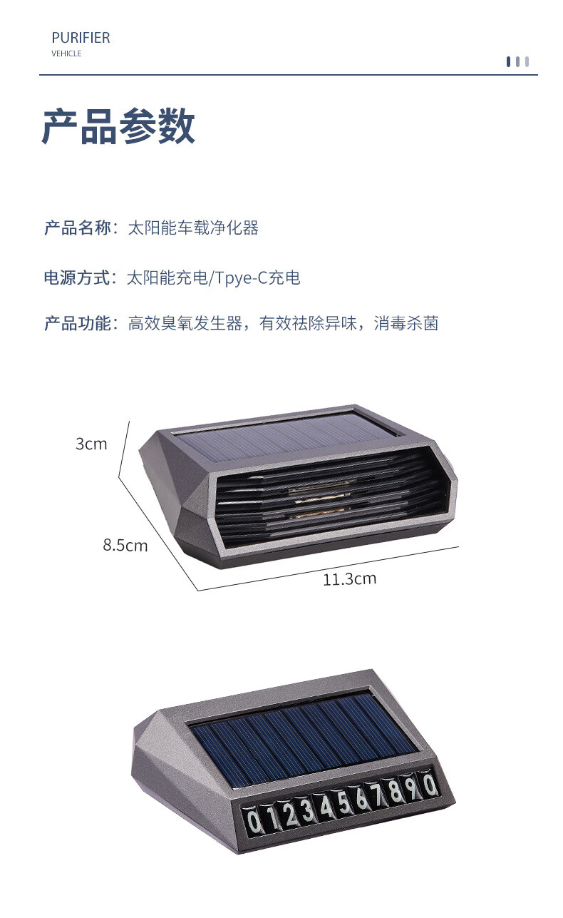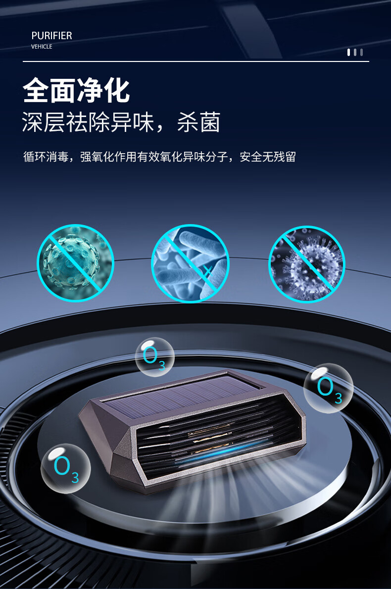Car solar dust removal car air purifier deodorization car ozone sterilization automatic deodorization and formaldehyde car solar air purifier 2024 new upgraded model